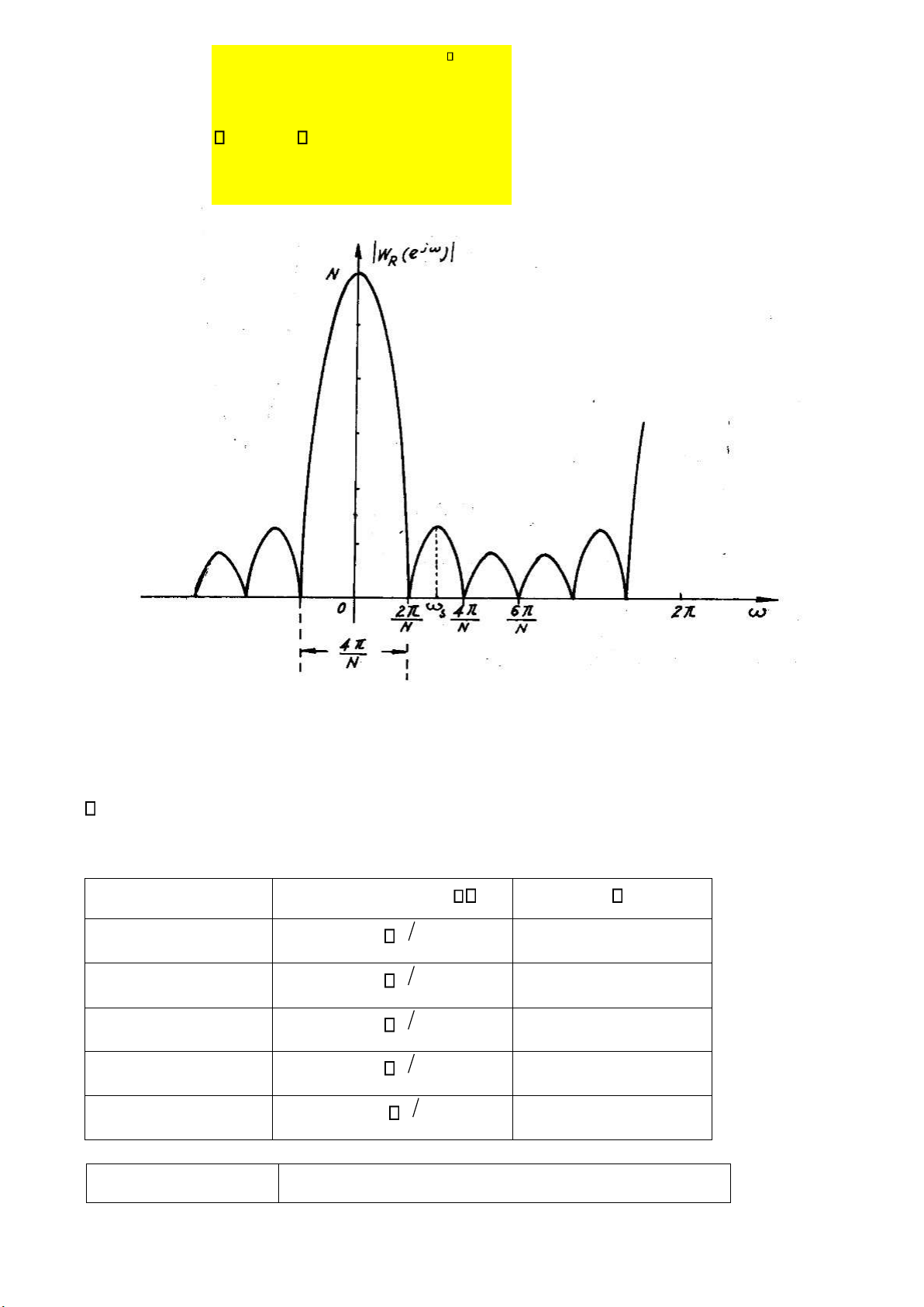 Bảng 0.1 Các tham số quan trọng của một số hàm cửa sổ Loại cửa sổ Bề rộng ỉnh trung tâm . Tỷ số (dB) Chữ nhật 4 N -13 Tam giác (Bartlett) 8 N -27 Hanning 8 N -32 Hamming 8 N -43 Blackman 12 N -58