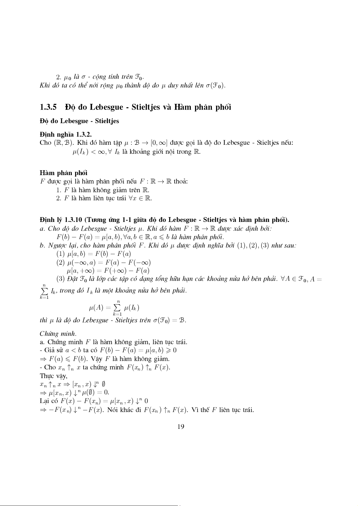 §é ®o Lebesgue - Stieltjes vµ Hµm ph©n phèi . . . . . . . . . . . . . . . . 19 1.3.6