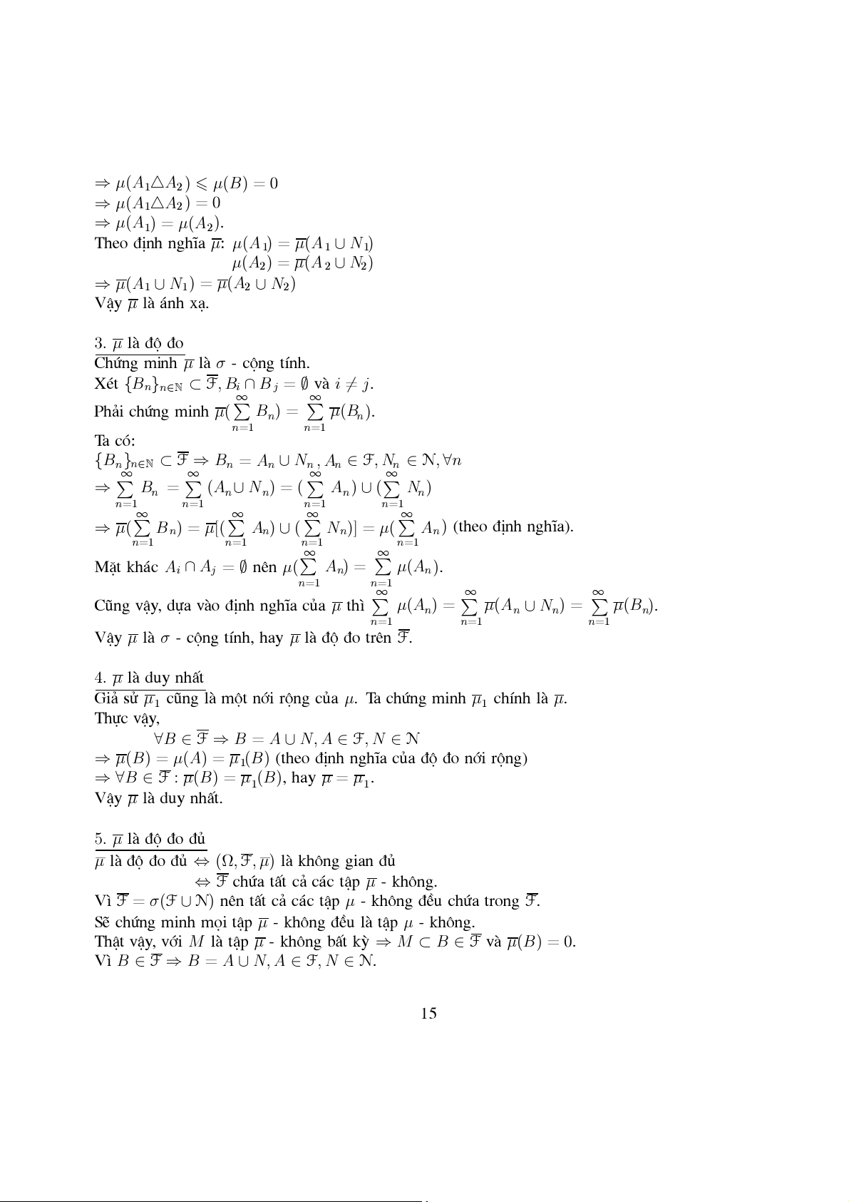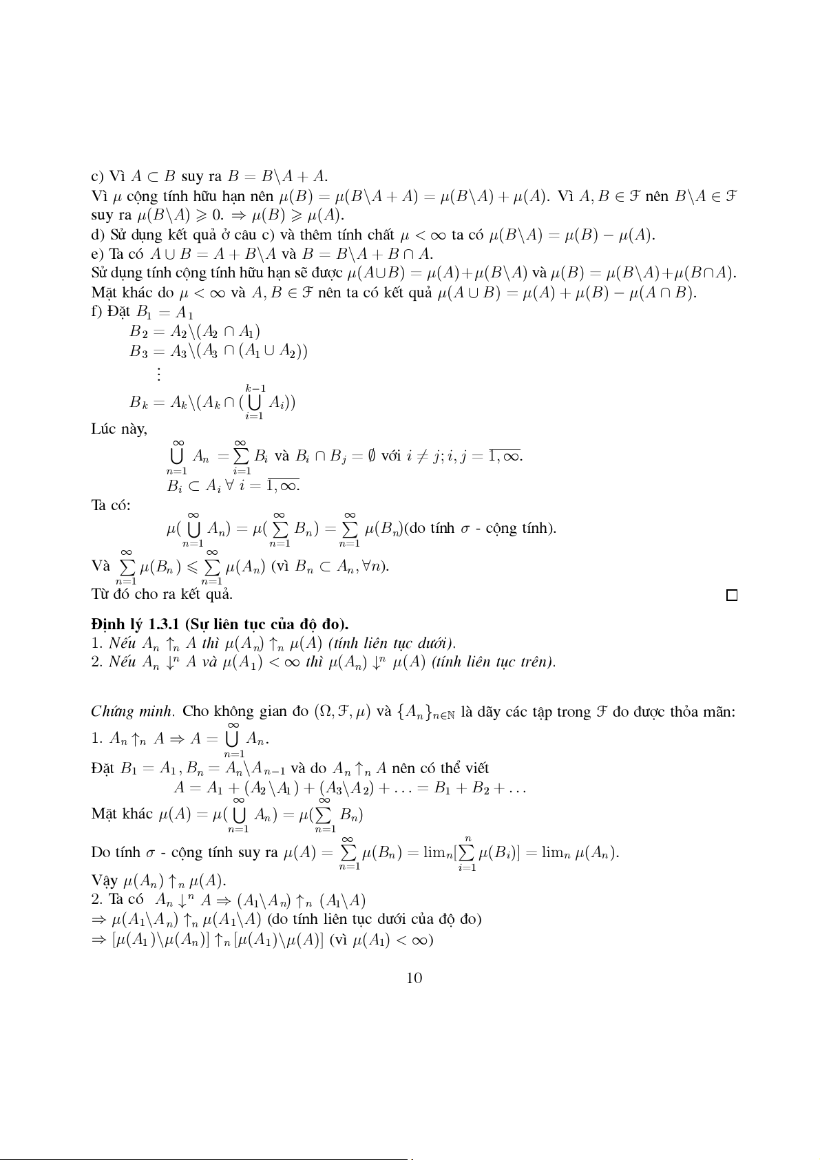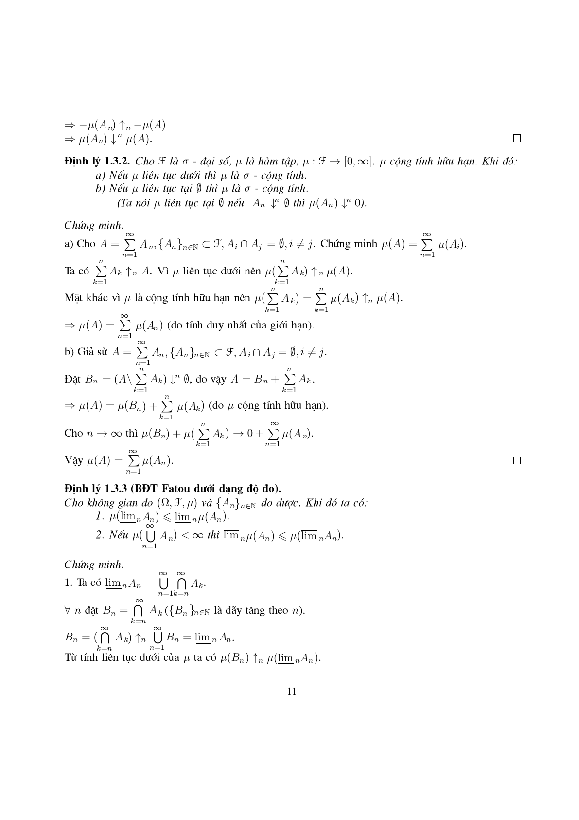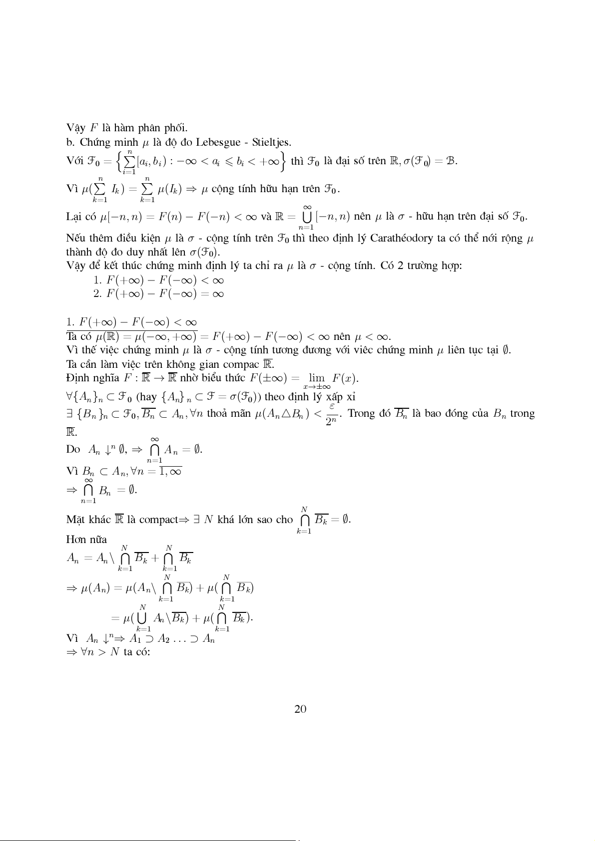VËy ®Ó kÕt thóc chøng minh ®Þnh lý ta chØ ra µ lµ σ - céng tÝnh. Cã 2 tr−êng hîp: