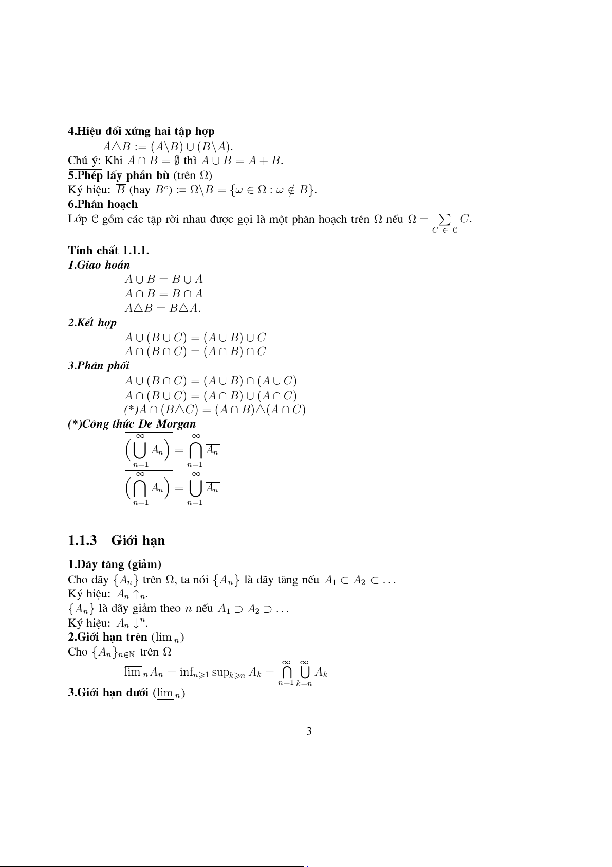C¸c phÐp to¸n trªn tËp hîp . . . . . . . . . . . . . . . . . . . . . . . . . . 2 1.1.3