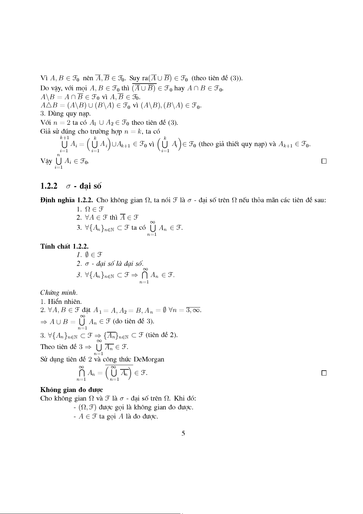 - A ∈ F ta gäi A lµ ®o ®−îc. 5 σ - ®¹i sè sinh