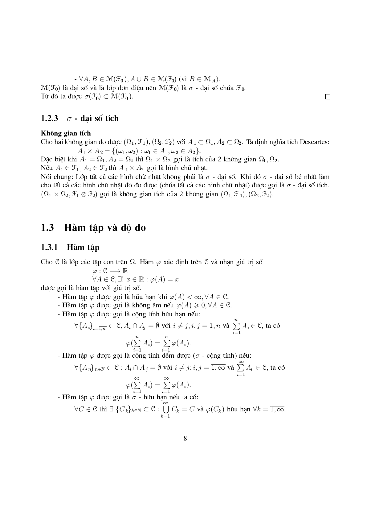 Hµm tËp vµ ®é ®o . . . . . . . . . . . . . . . . . . . . . . . . . . . . . . . . . . . . 8 1.3.1