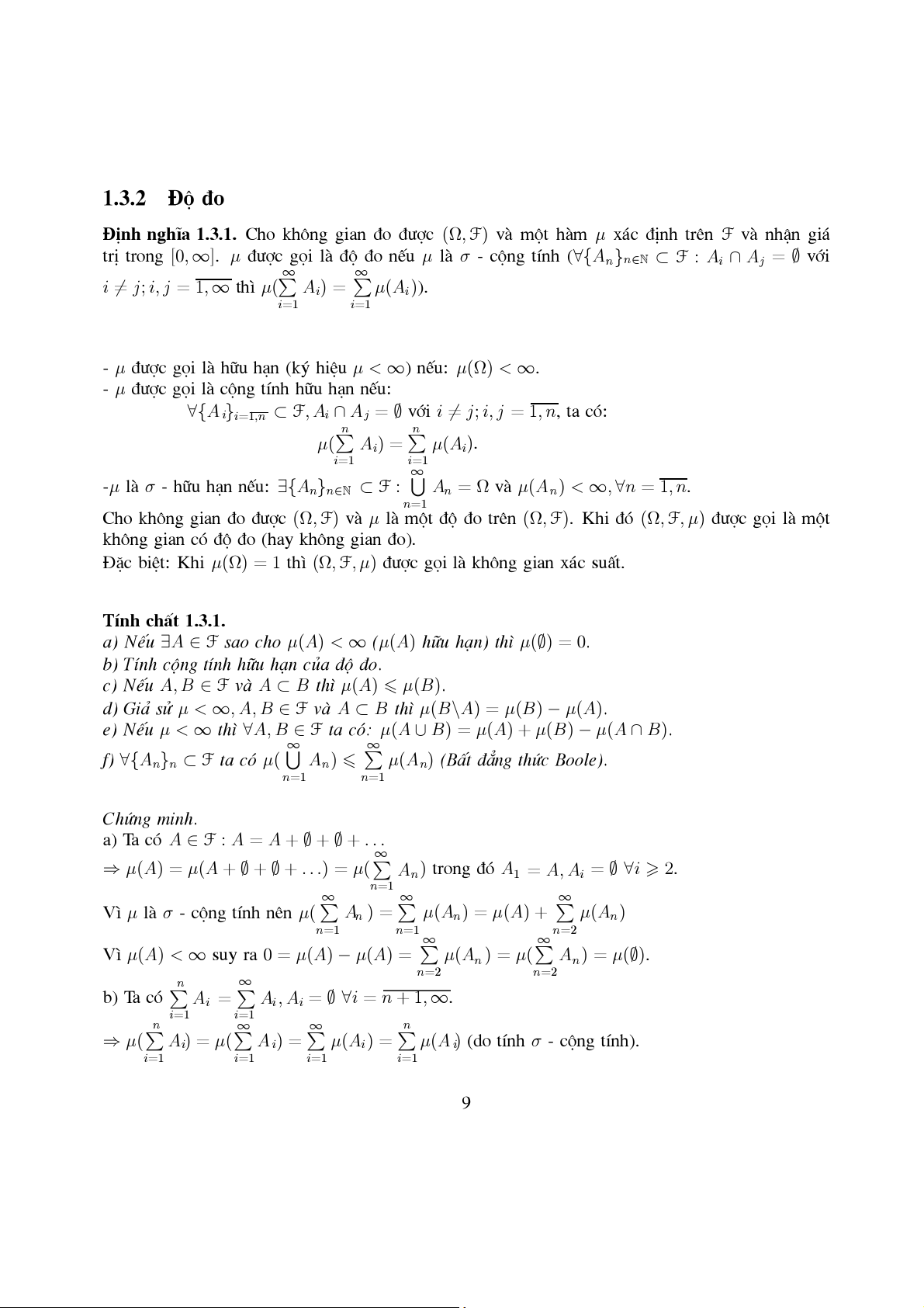Cho kh«ng gian Ω vµ F lµ σ - ®¹i sè trªn Ω. Khi ®ã: