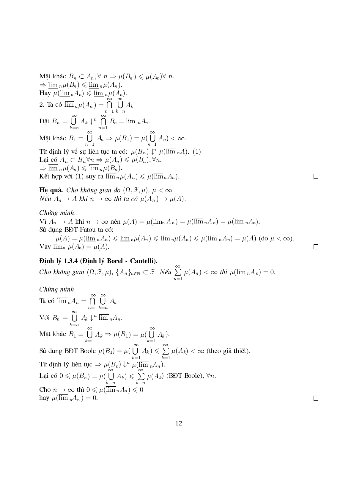 ∀n, µ(Bn) µ(A) µ∗( ) A . Cho n → ∞ : µ∗(A) ( µ A ) µ∗ ( )