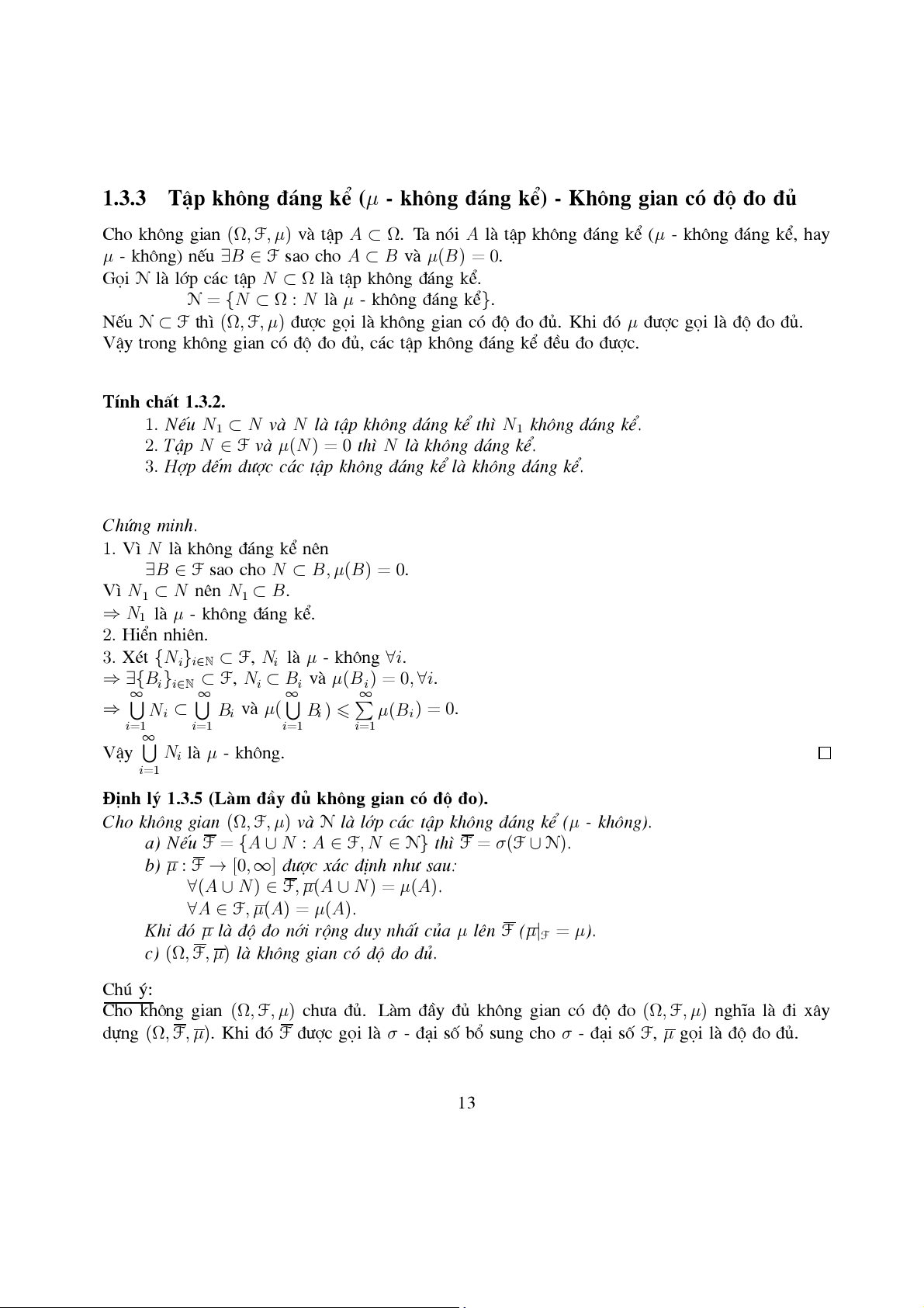 TËp kh«ng ®¸ng kÓ (µ - kh«ng ®¸ng kÓ) - Kh«ng gian cã ®é ®o ®ñ . . . . 13 1.3.4