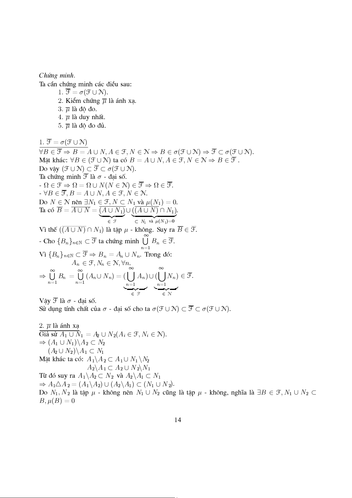 XÐt A ∈ F bÊt kú. Do vËy A = B ∪ N, B ∈ F, N ∈ N.