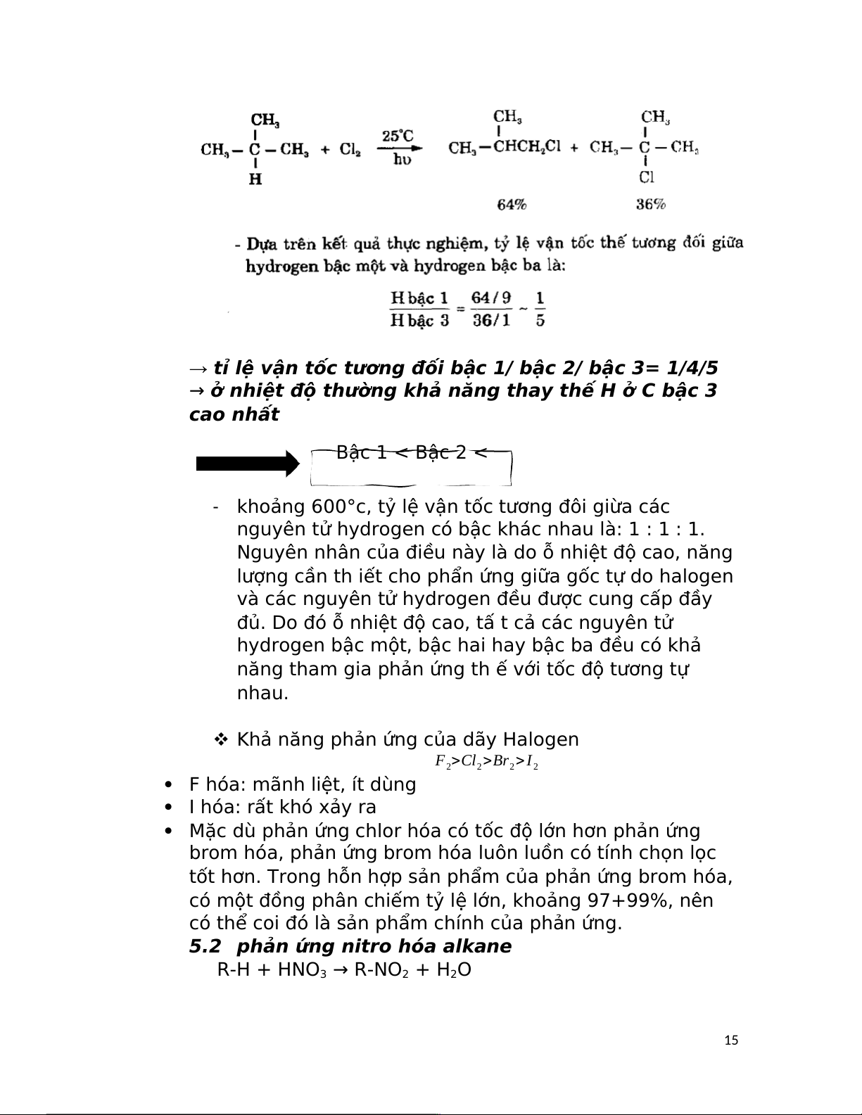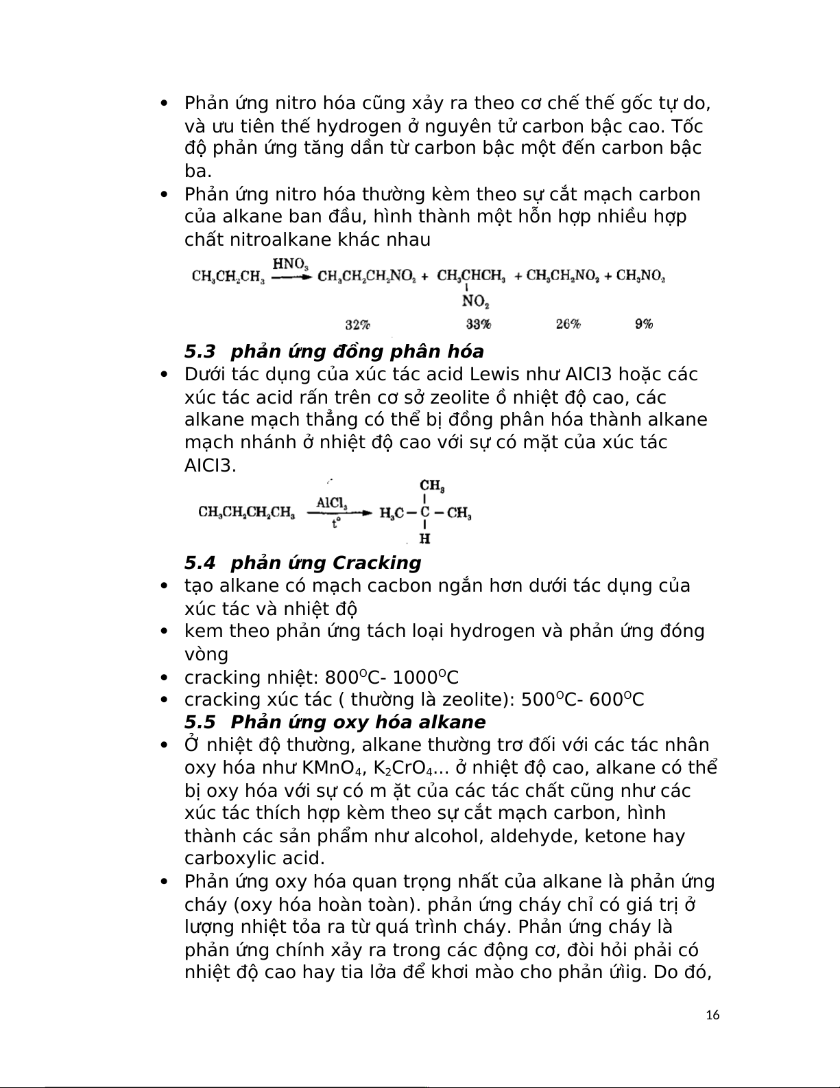 5.2 phản ứng nitro hóa alkane R-H + HNO3 → R-NO2 + H2O 15