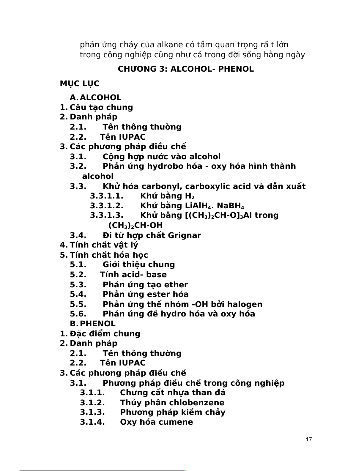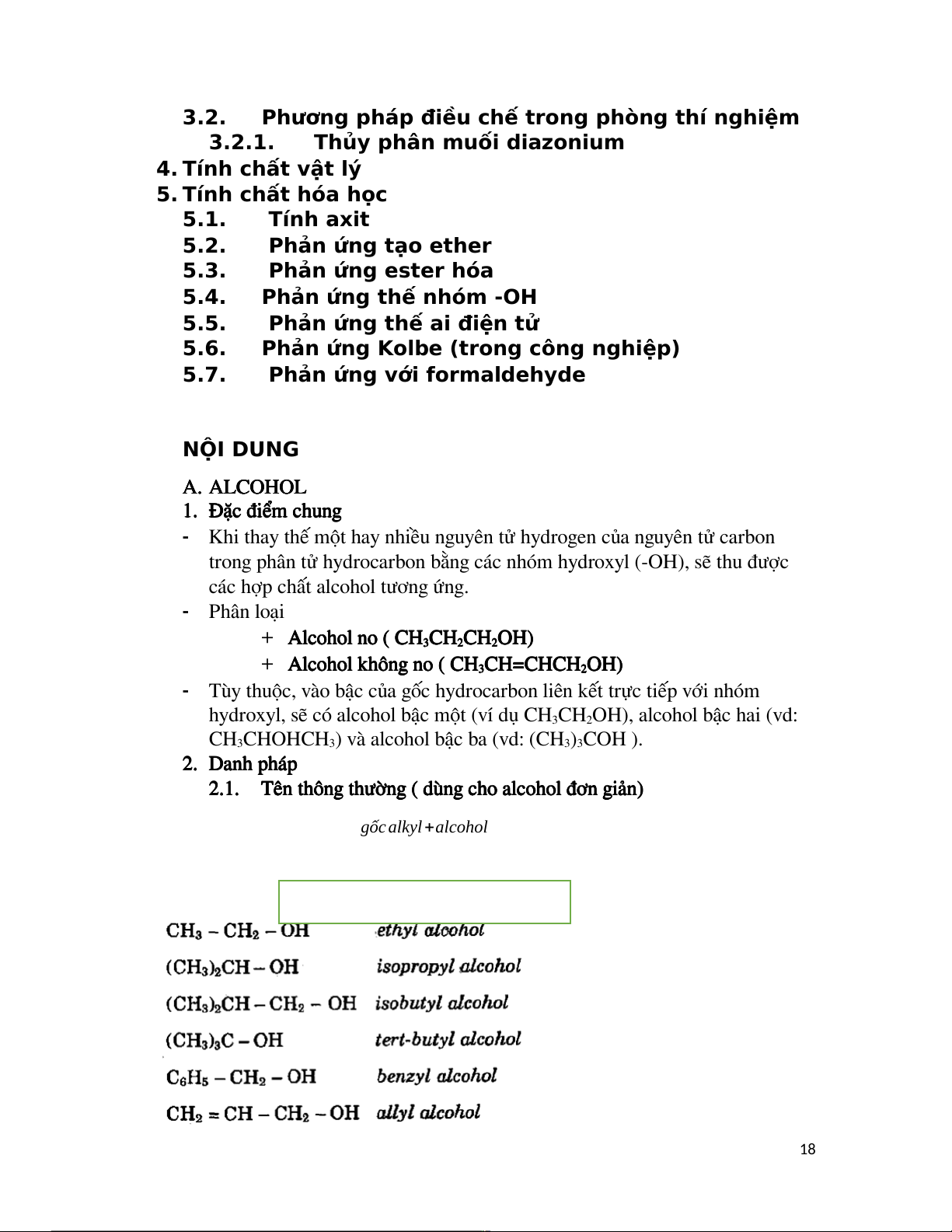 CHƯƠNG 3: ALCOHOL- PHENOL MỤC LỤC A. ALCOHOL 1. Câu tạo chung 2. Danh pháp 2.1. Tên thông thường 2.2. Tên IUPAC
