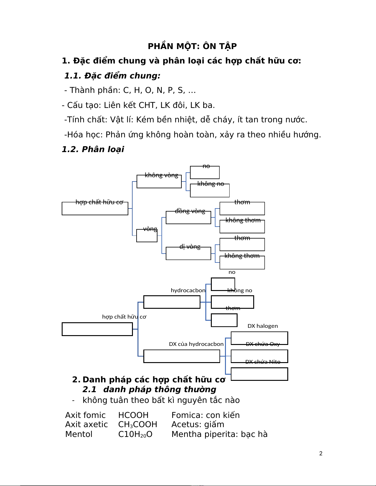 HÓA HỮU CƠ Mục lục Phần một: Ôn tập