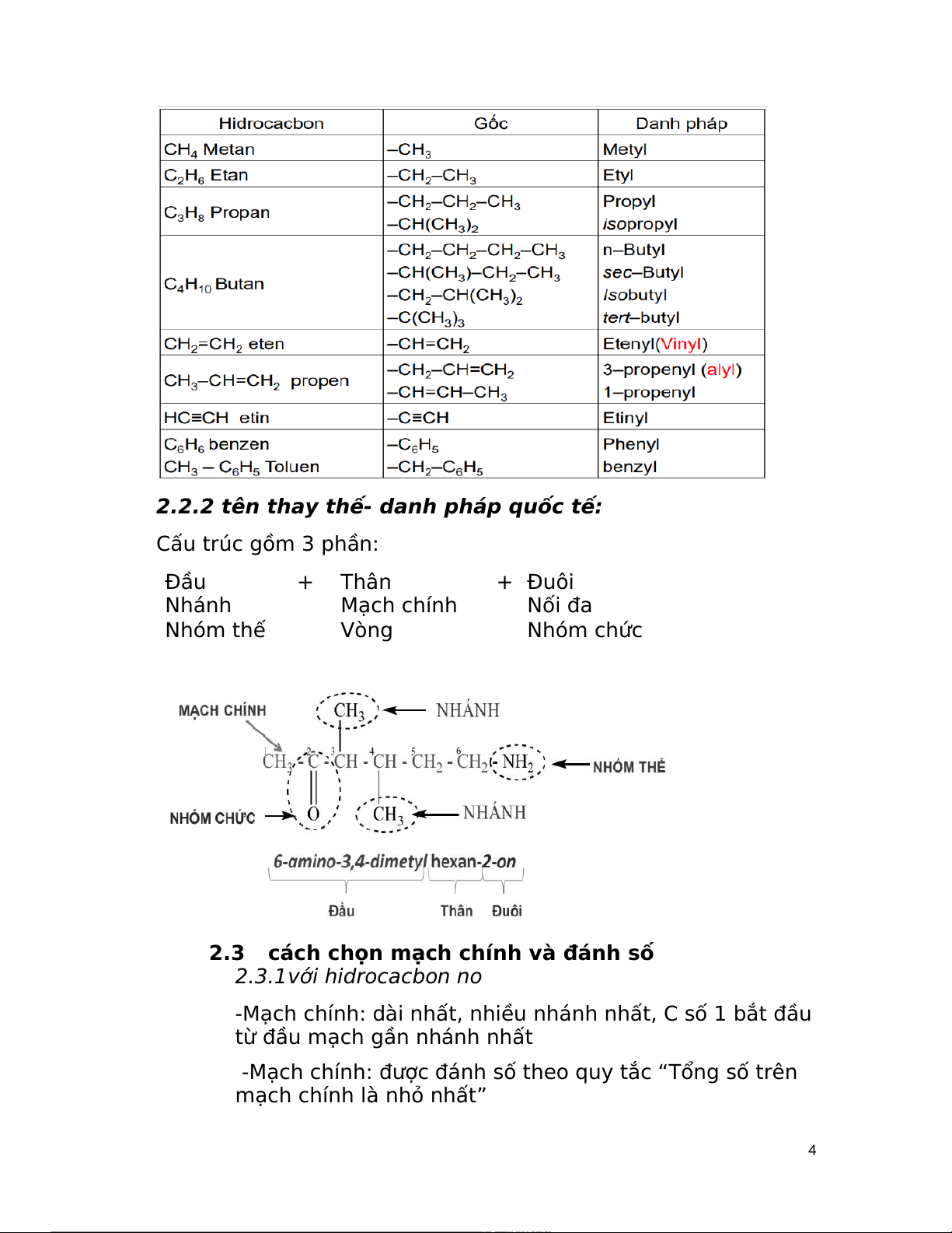 -Mạch chính có nhiều nhóm chức, số bắt đầu từ nhóm chức chính