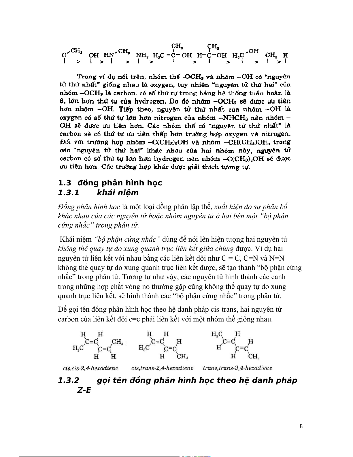gọi tên đồng phân hình học theo hệ danh pháp Z-E 8