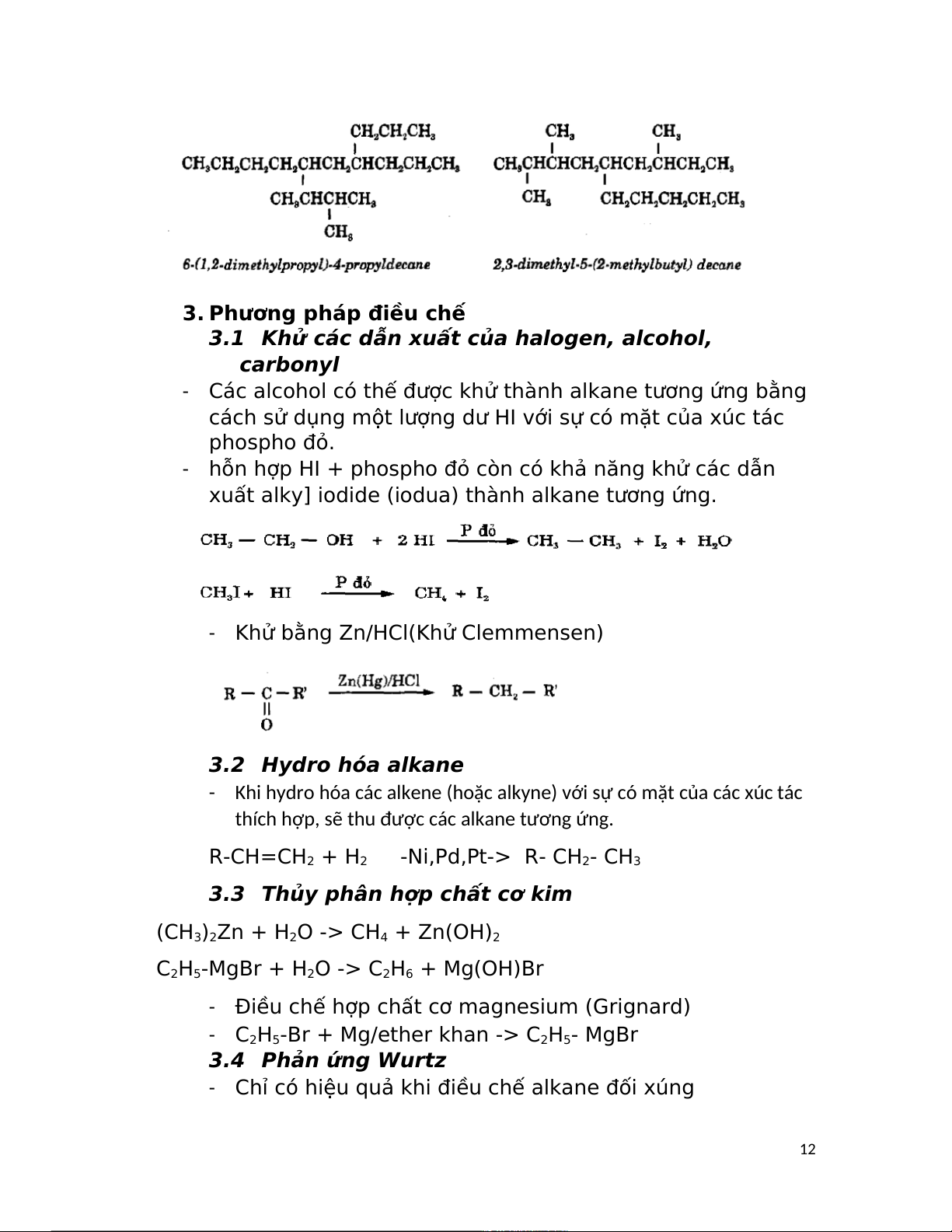 các alkane không phân nhánh 2.2 các alkane phân nhánh 2.3 tên các gốc alkyl
