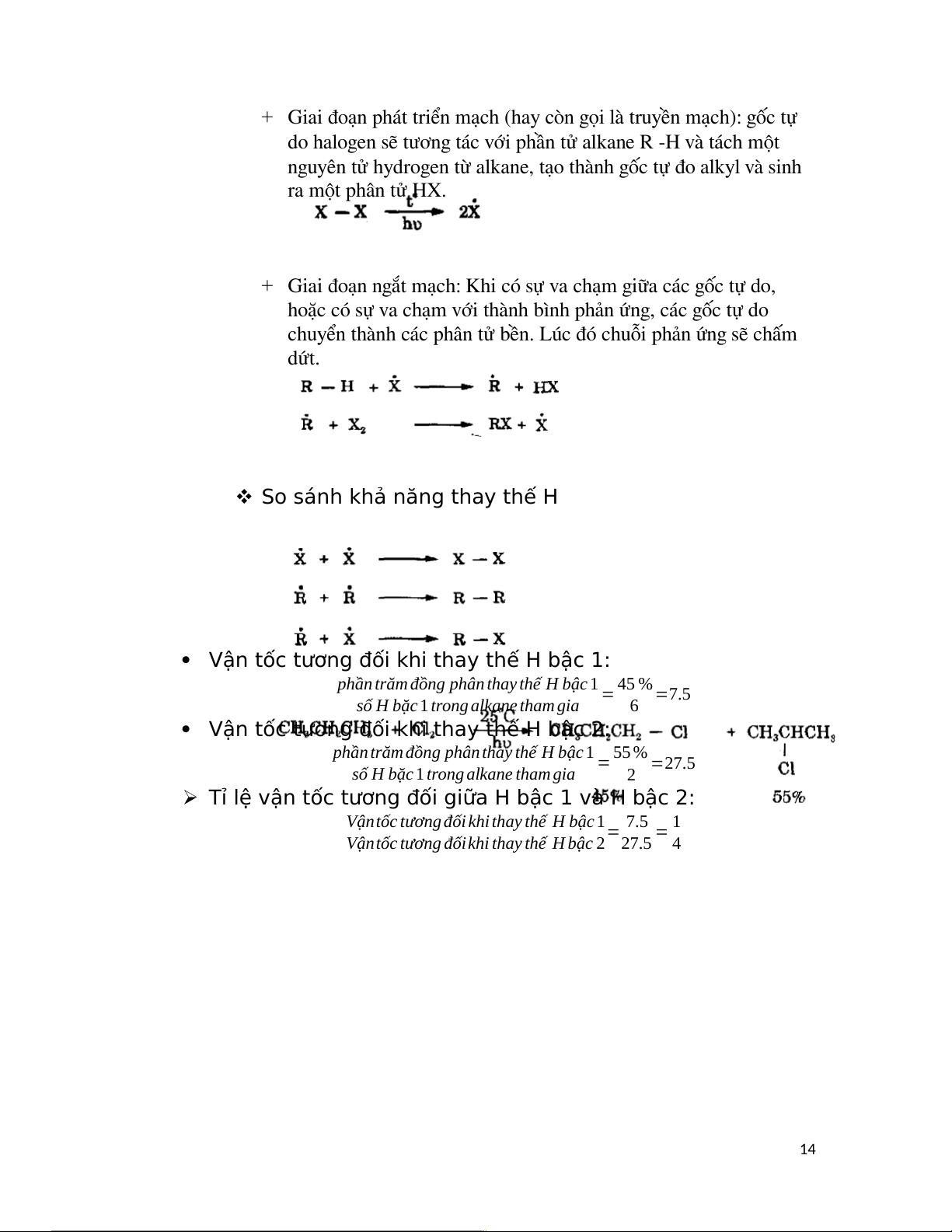 Mặc dù phản ứng chlor hóa có tốc độ lớn hơn phản ứng
