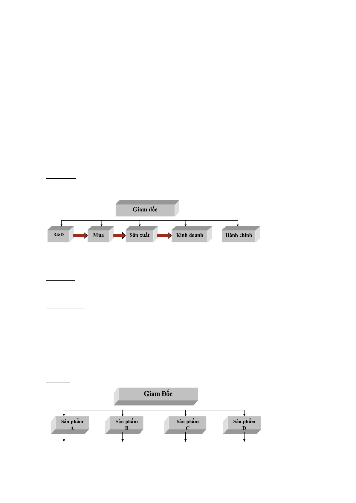 phận DN. Cấu trúc tổ chức phụ thuộc vào chiến lược, quy mô và số lượng sản phẩm.