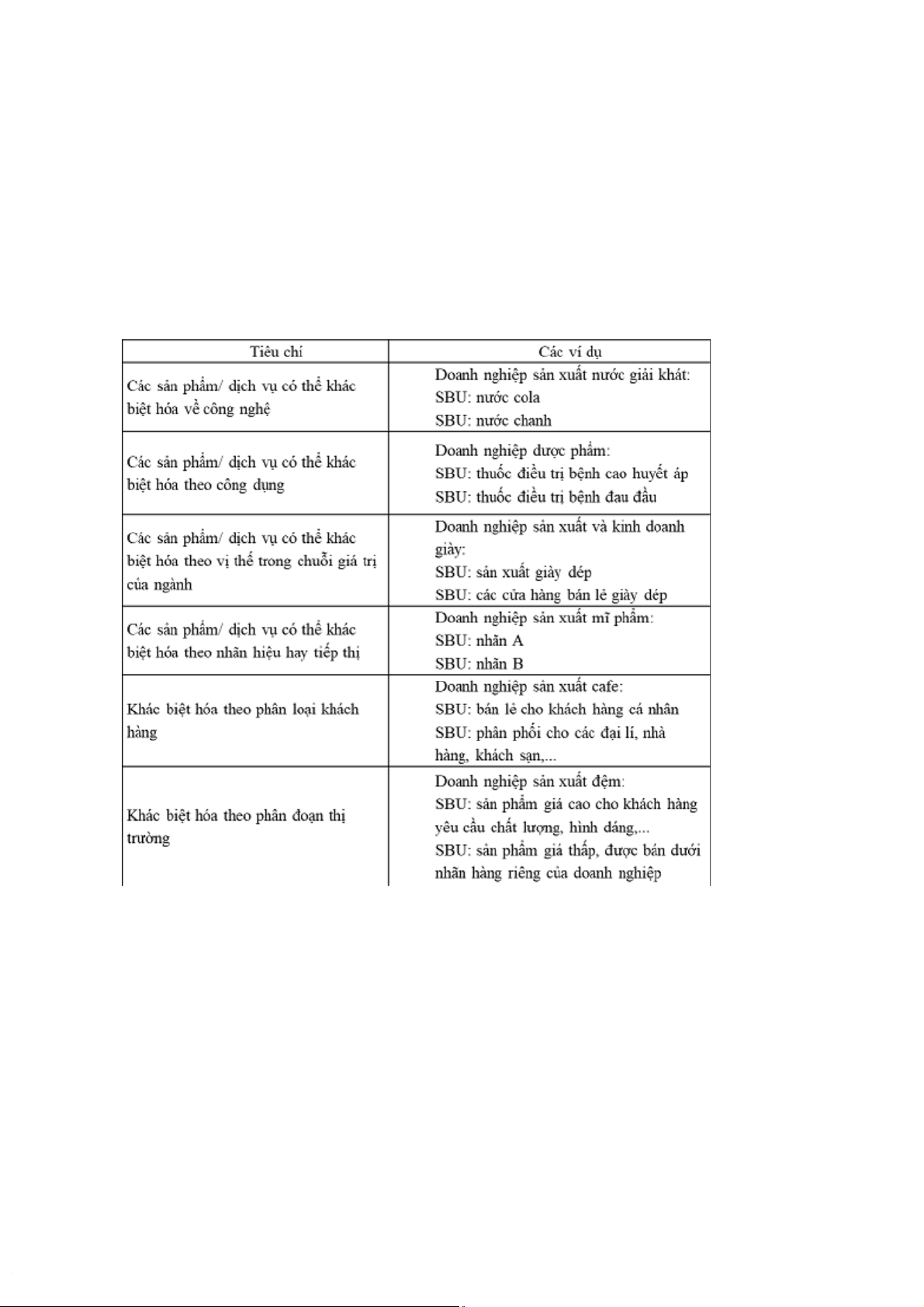 - Đơn vị kinh doanh chiến lược (SBU): là một đơn vị kinh doanh riêng lẻ hoặc trên một tập