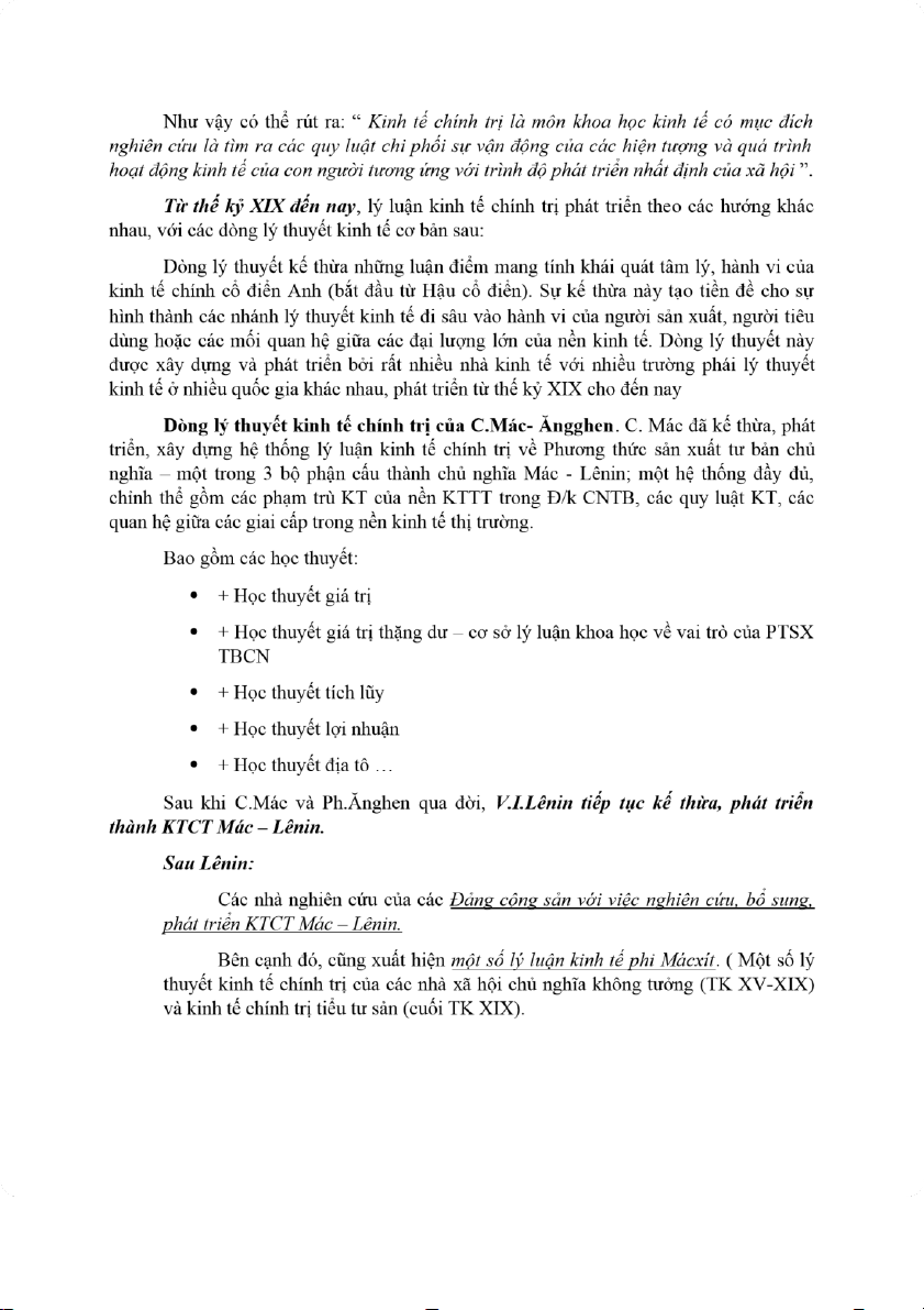 tô, tư bản... để rút ra các quy luật kinh tế. Lý luận kinh tế chính trị cổ điển Anh đã rút ra