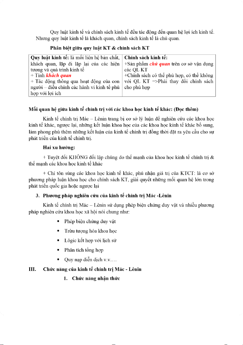 CHỨC NĂNG CỦA KINH TẾ CHÍNH TRỊ MÁC – LÊNIN I.