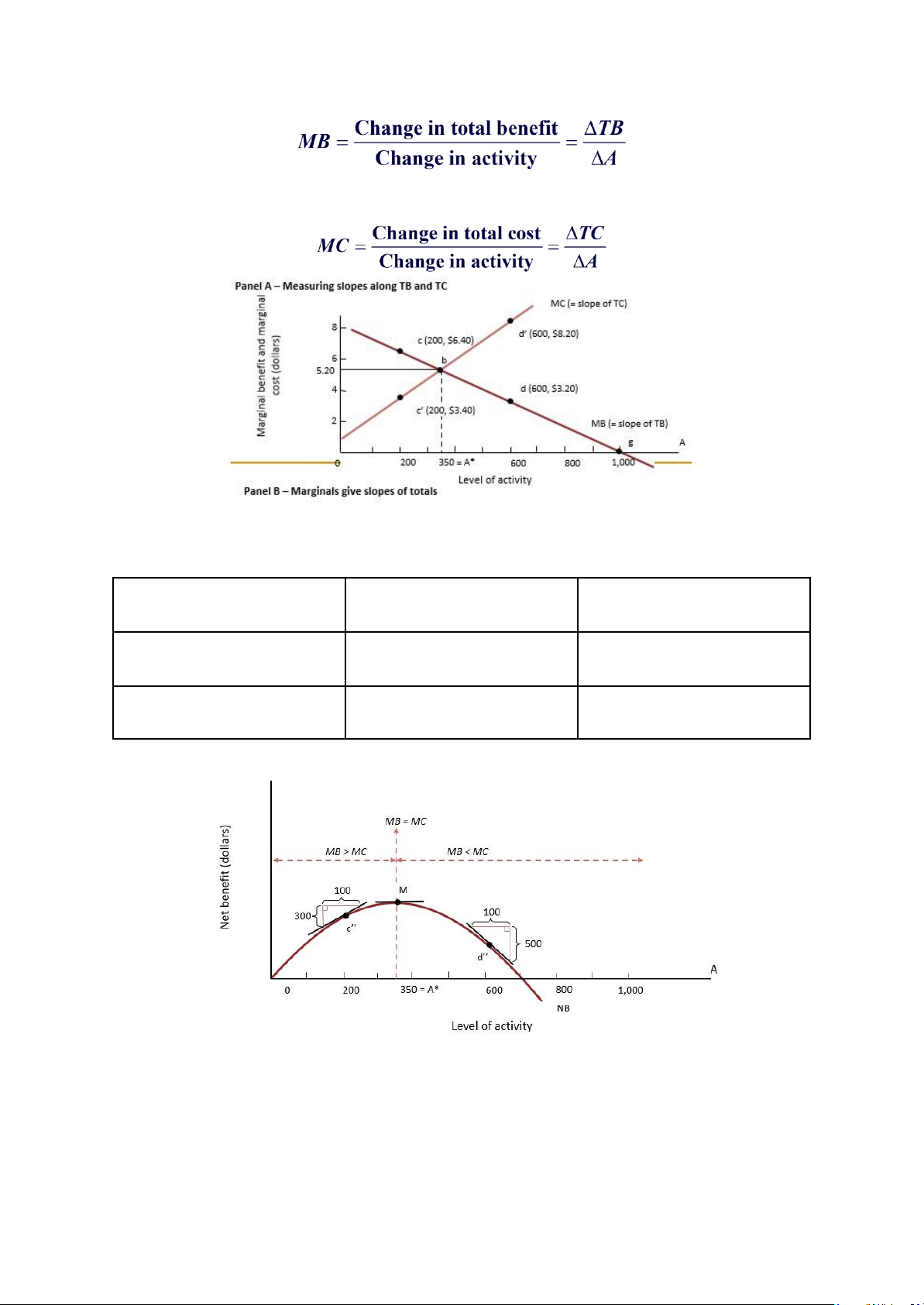 * Mô tả đồ thị: Điểm cắt giữa MB và MC là mức tối đa của 1 hoạt động, tại đó MB = MC. MB > MC MB < MC Tăng hoạt động NB tăng NB giảm Giảm hoạt động NB giảm NB tăng