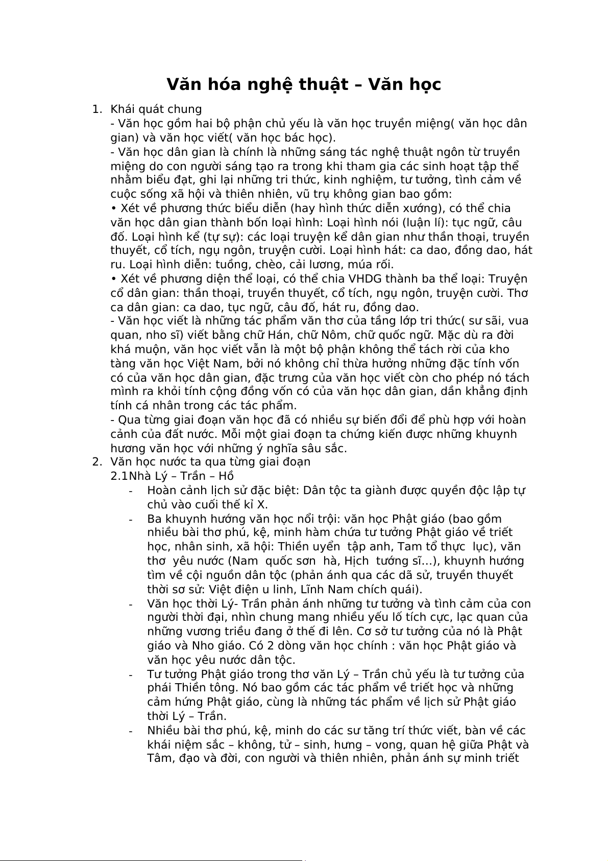 Văn hóa nghệ thuật – Văn học 1. Khái quát chung