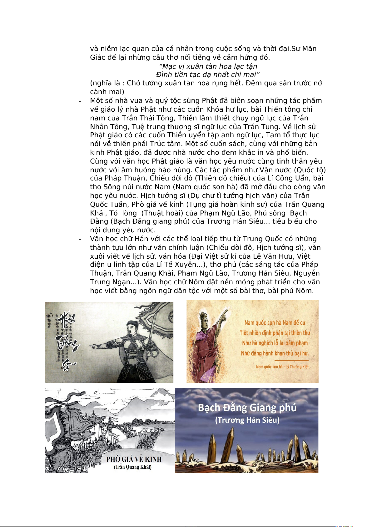 cảm hứng Phật giáo, cùng là những tác phẩm về lịch sử Phật giáo thời Lý – Trần. -