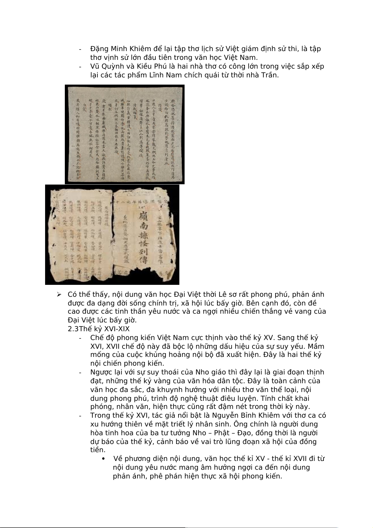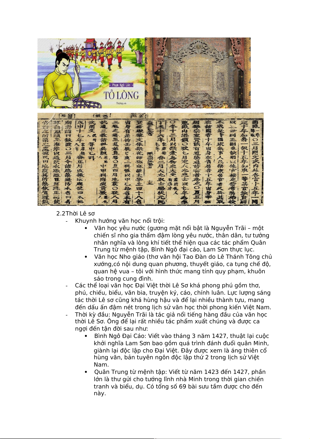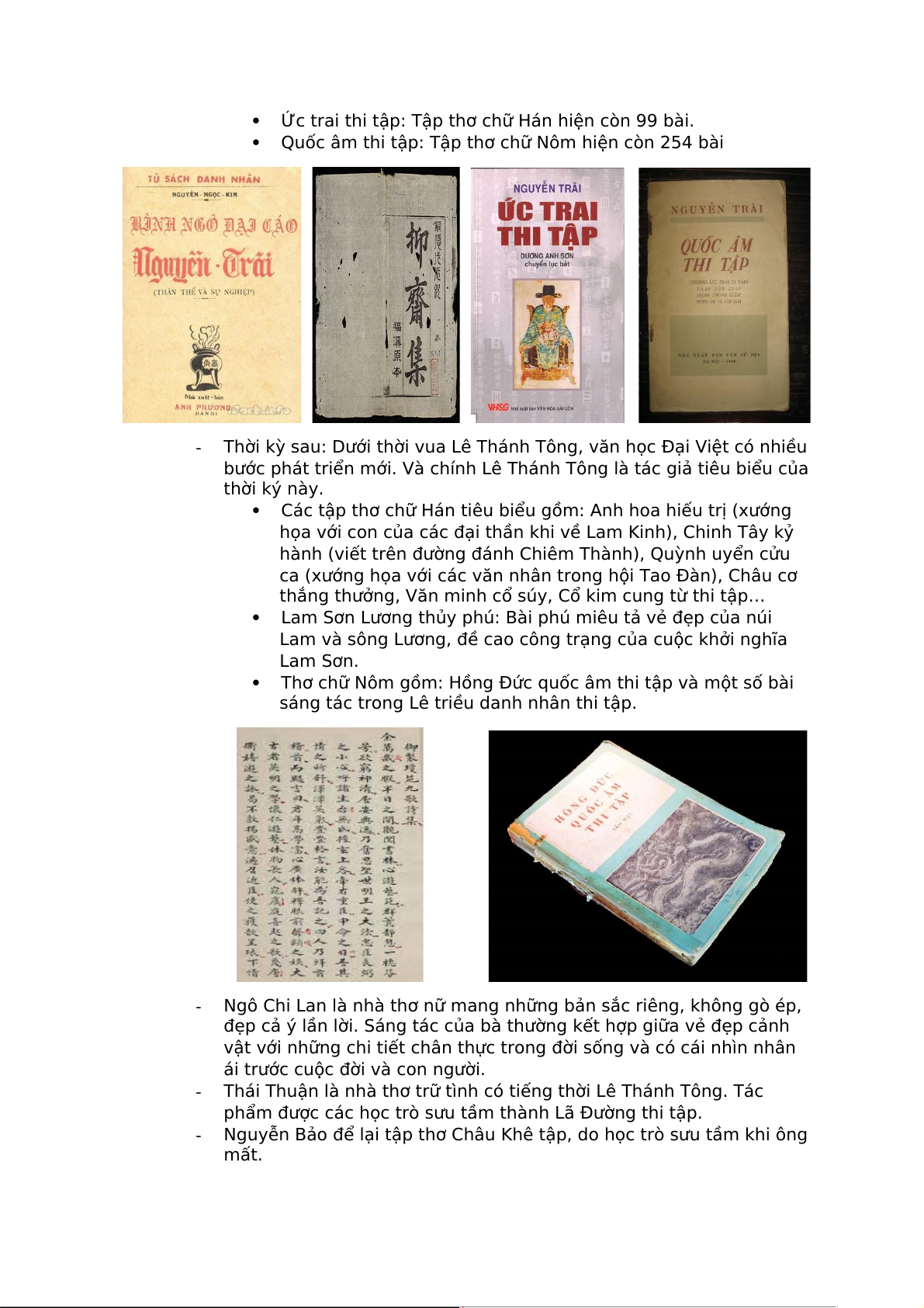 Thời kỳ sau: Dưới thời vua Lê Thánh Tông, văn học Đại Việt có nhiều