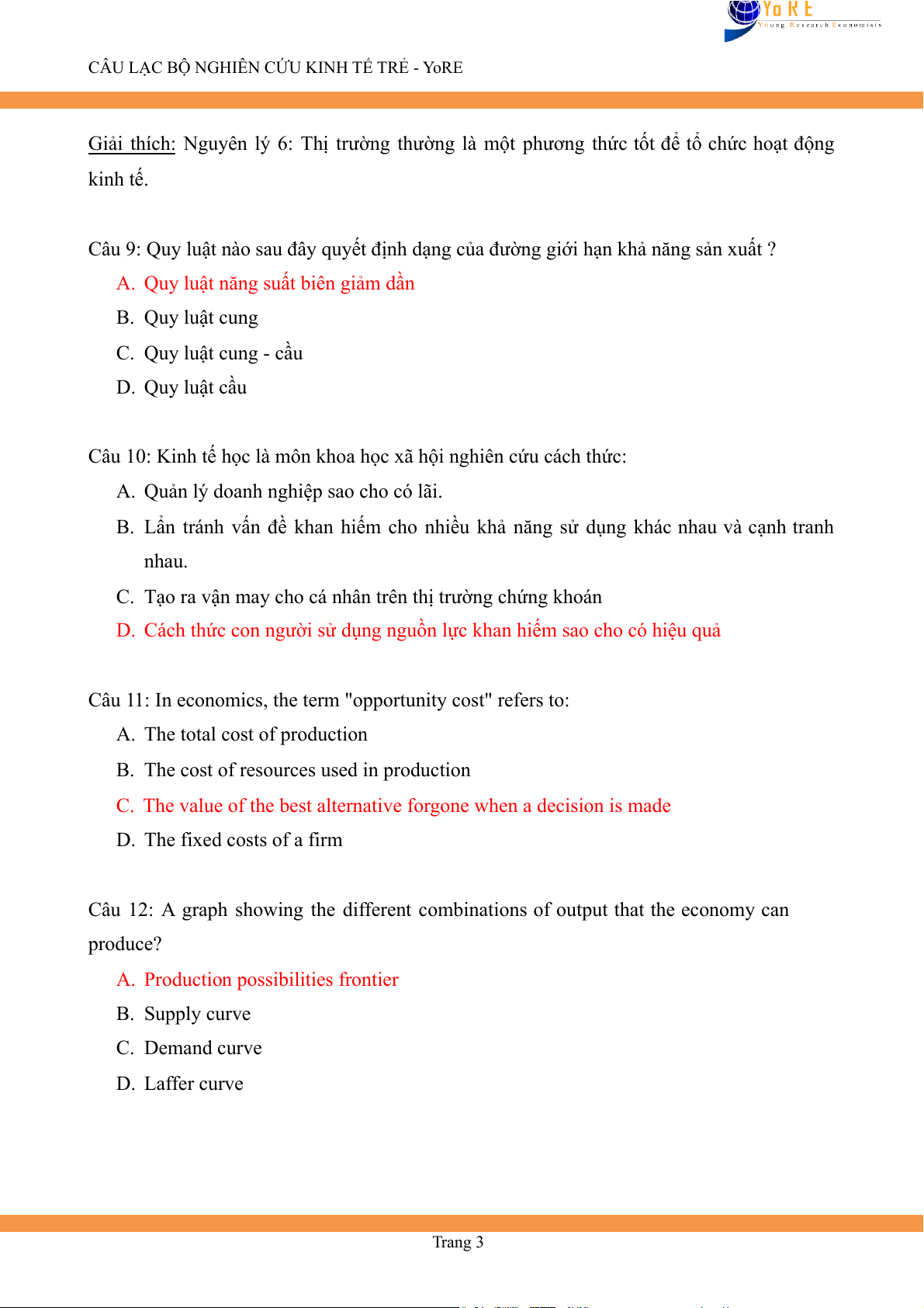 CÂU LẠC BỘ NGHIÊN CỨU KINH TẾ TRẺ - YoRE