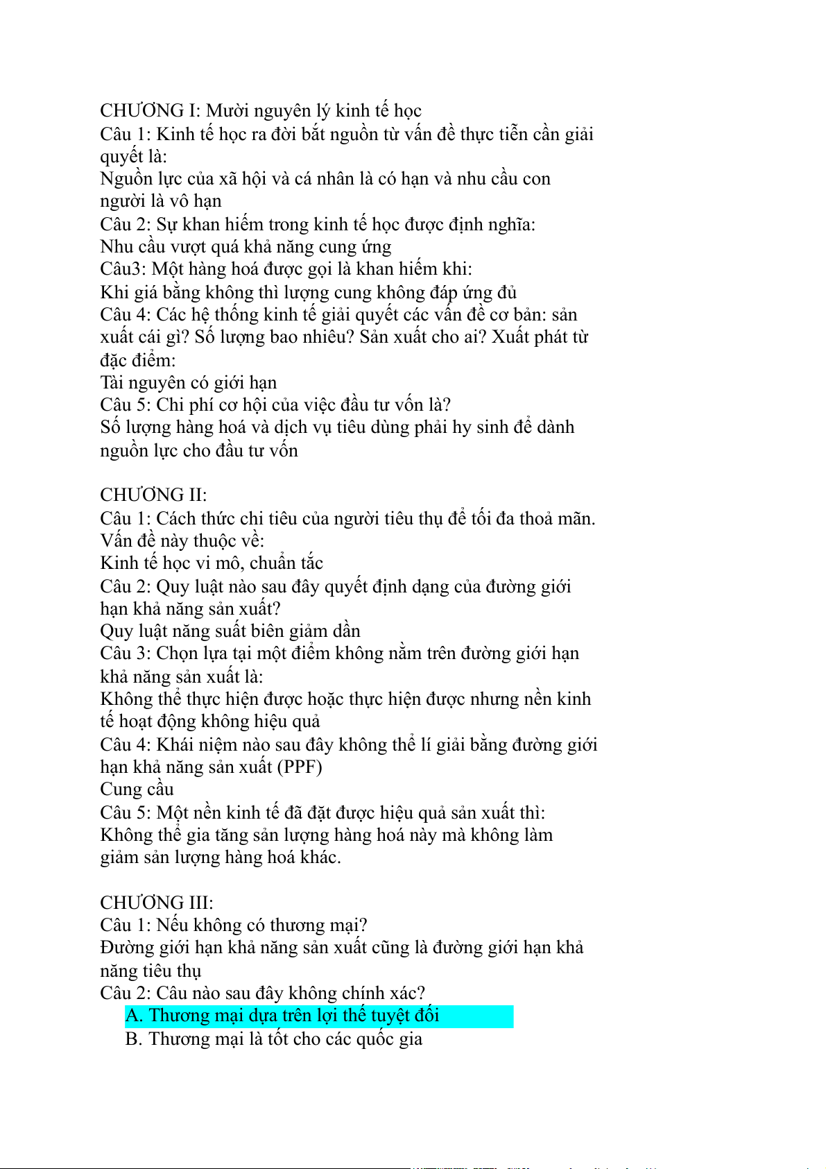 CHƯƠNG I: Mười nguyên lý kinh tế học