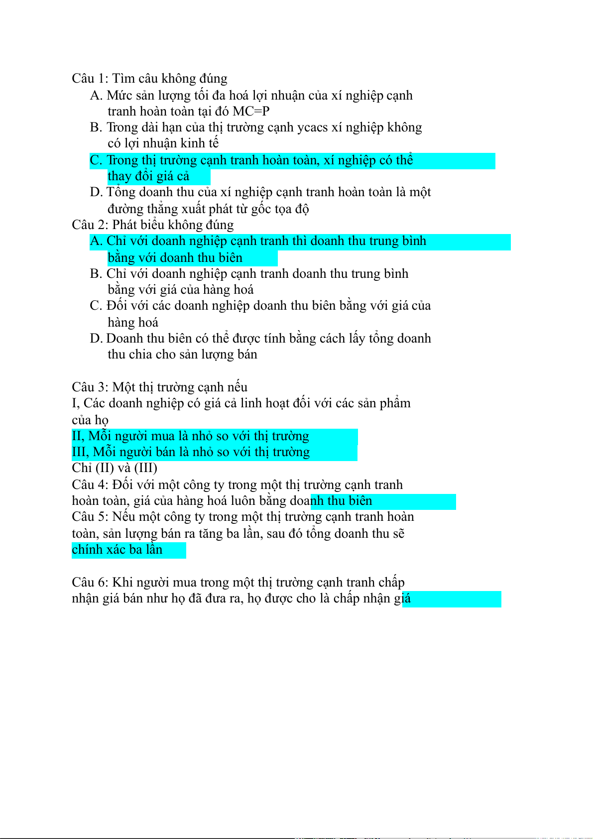 Câu 6: Khi người mua trong một thị trường cạnh tranh chấp