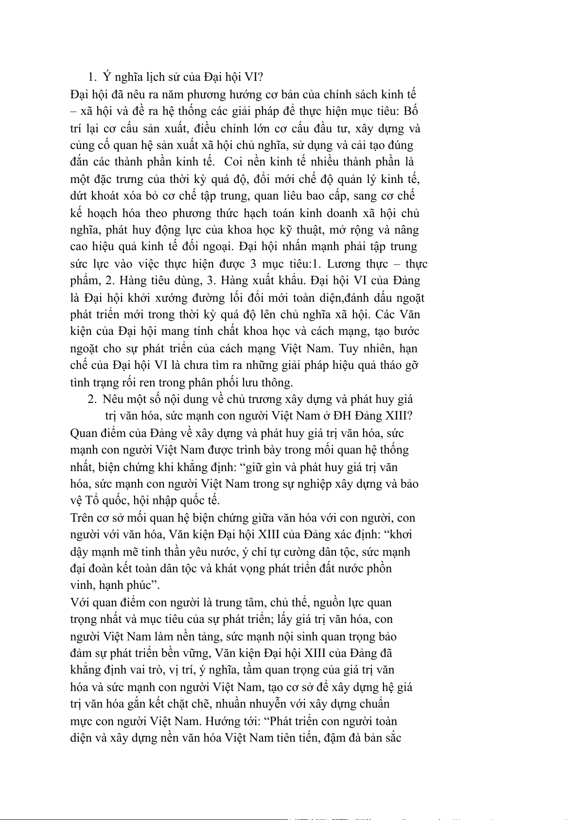 1. Ý nghĩa lịch sử của Đại hội VI?