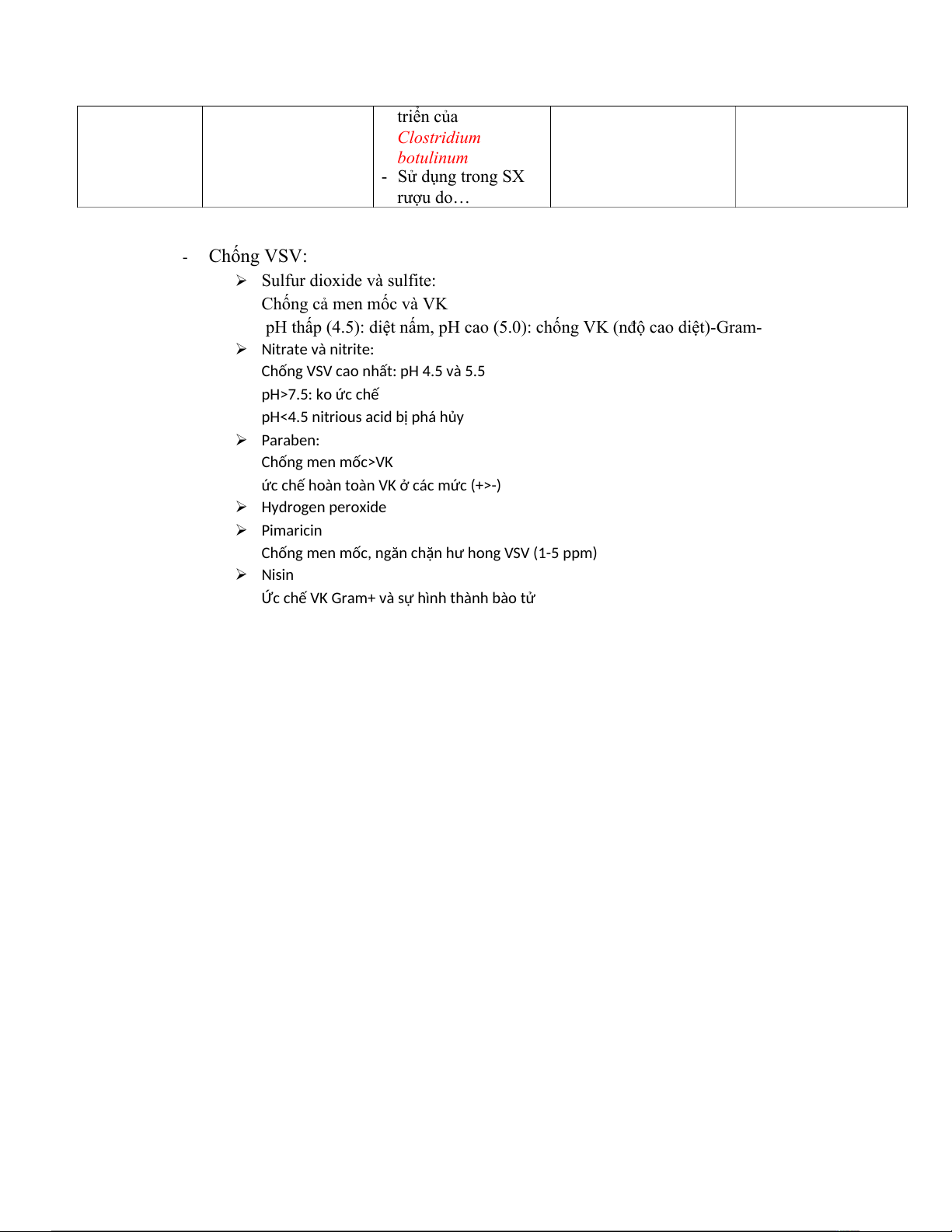 và sự hình thành bào lactis hạn chế sự phát tử triển của Clostridium botulinum - Sử dụng trong SX rượu do… - Chống VSV:
