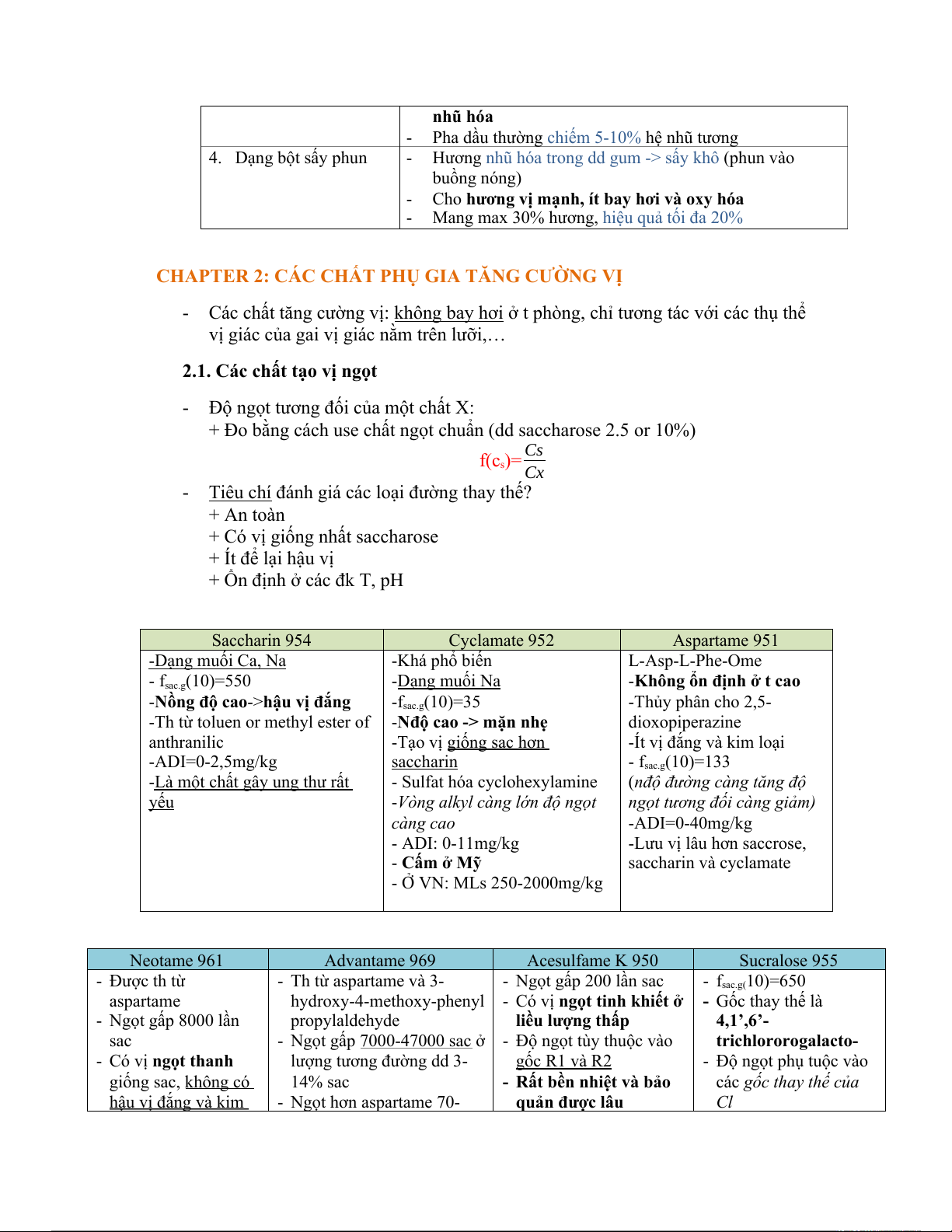 -Lưu vị lâu hơn saccrose, - Cấm ở Mỹ saccharin và cyclamate - Ở VN: MLs 250-2000mg/kg Neotame 961 Advantame 969 Acesulfame K 950 Sucralose 955 - Được th từ - Th từ aspartame và 3- - Ngọt gấp 200 lần sac - fsac.g(10)=650 aspartame
