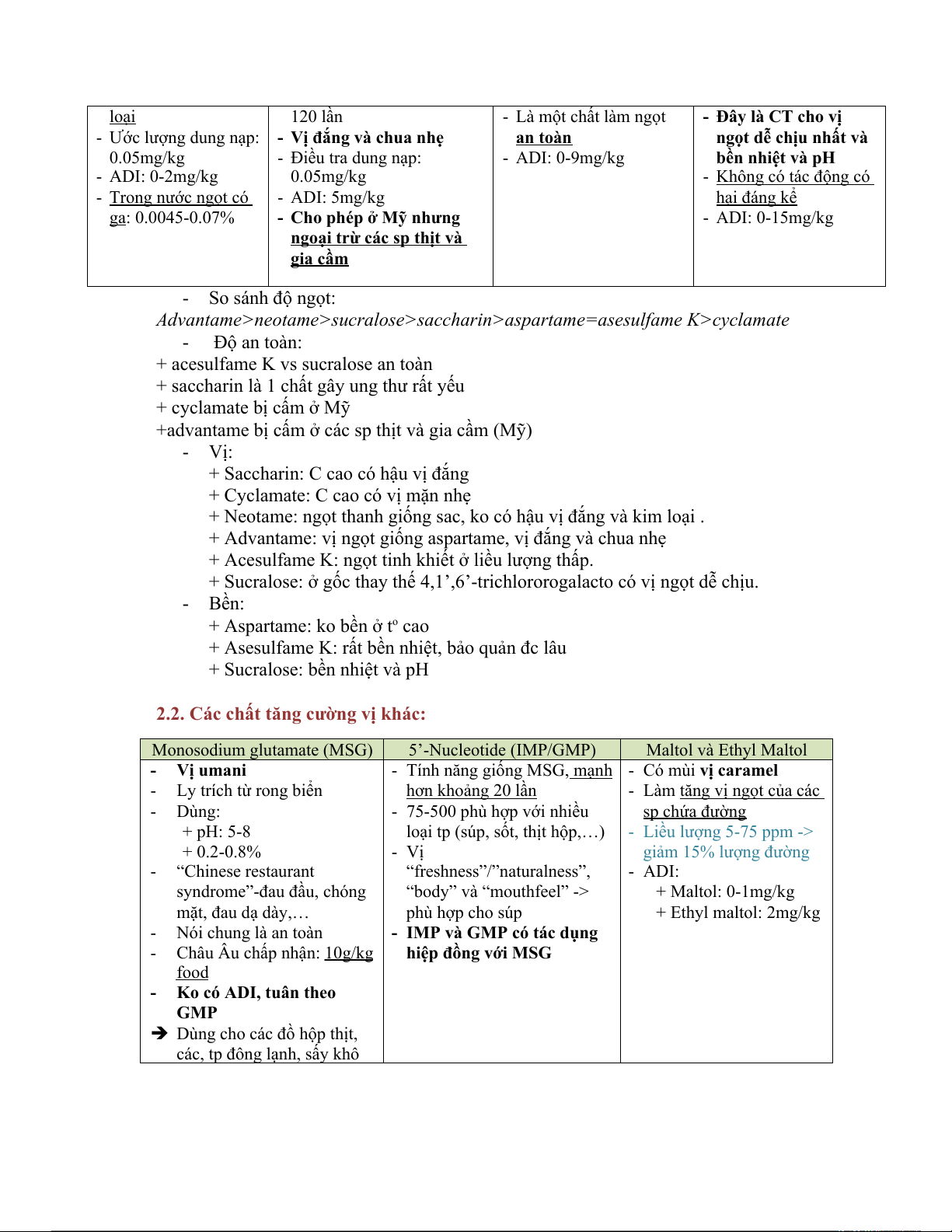 ngọt tương đối càng giảm) càng cao -ADI=0-40mg/kg - ADI: 0-11mg/kg