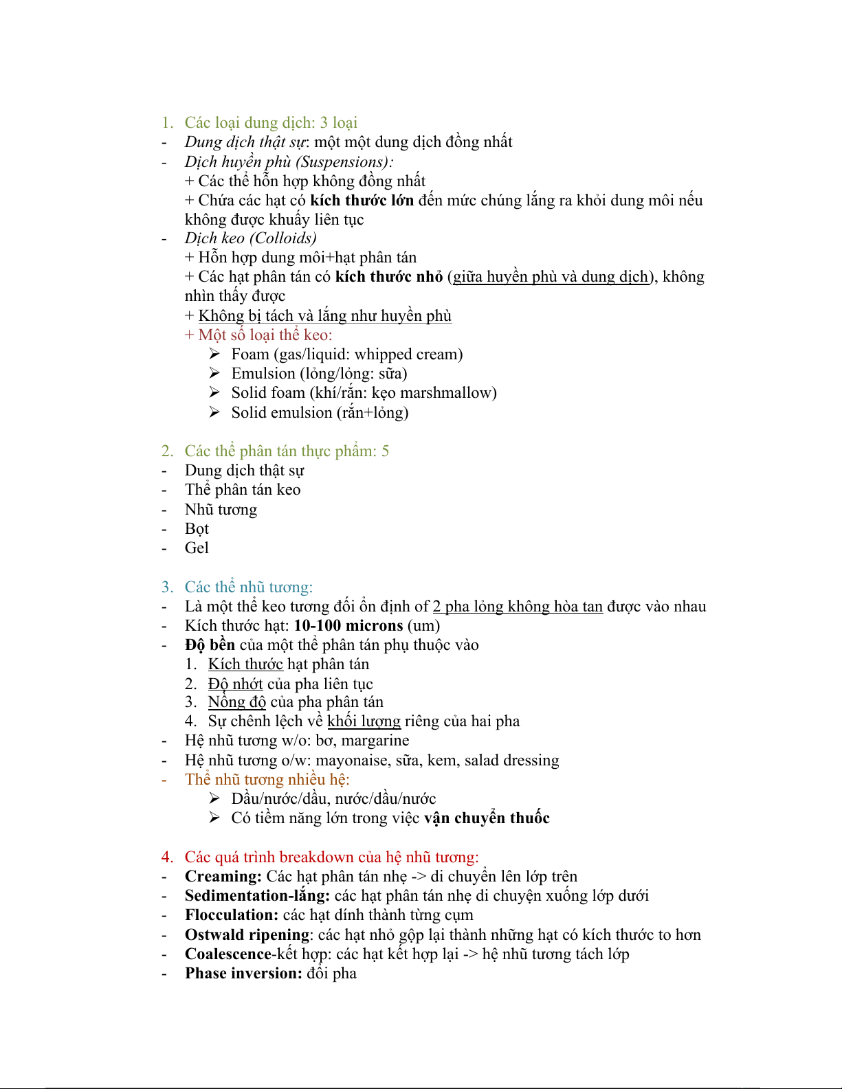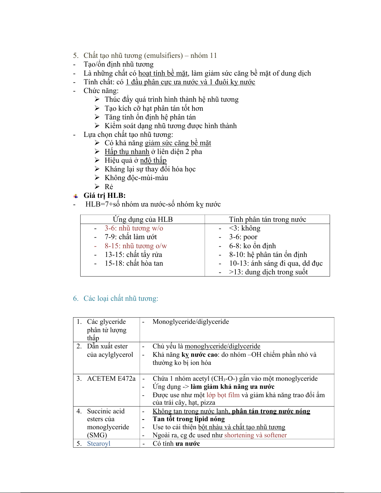 Tp tan trong nước/các loại gum + tp khác/pha dầu -> nhũ hóa -