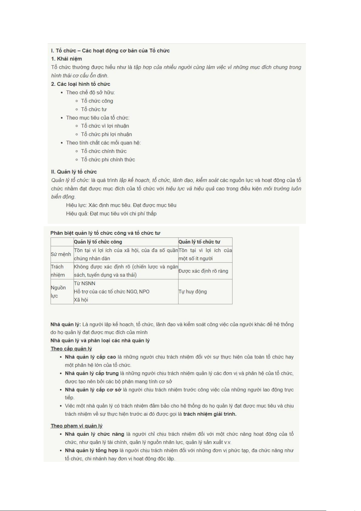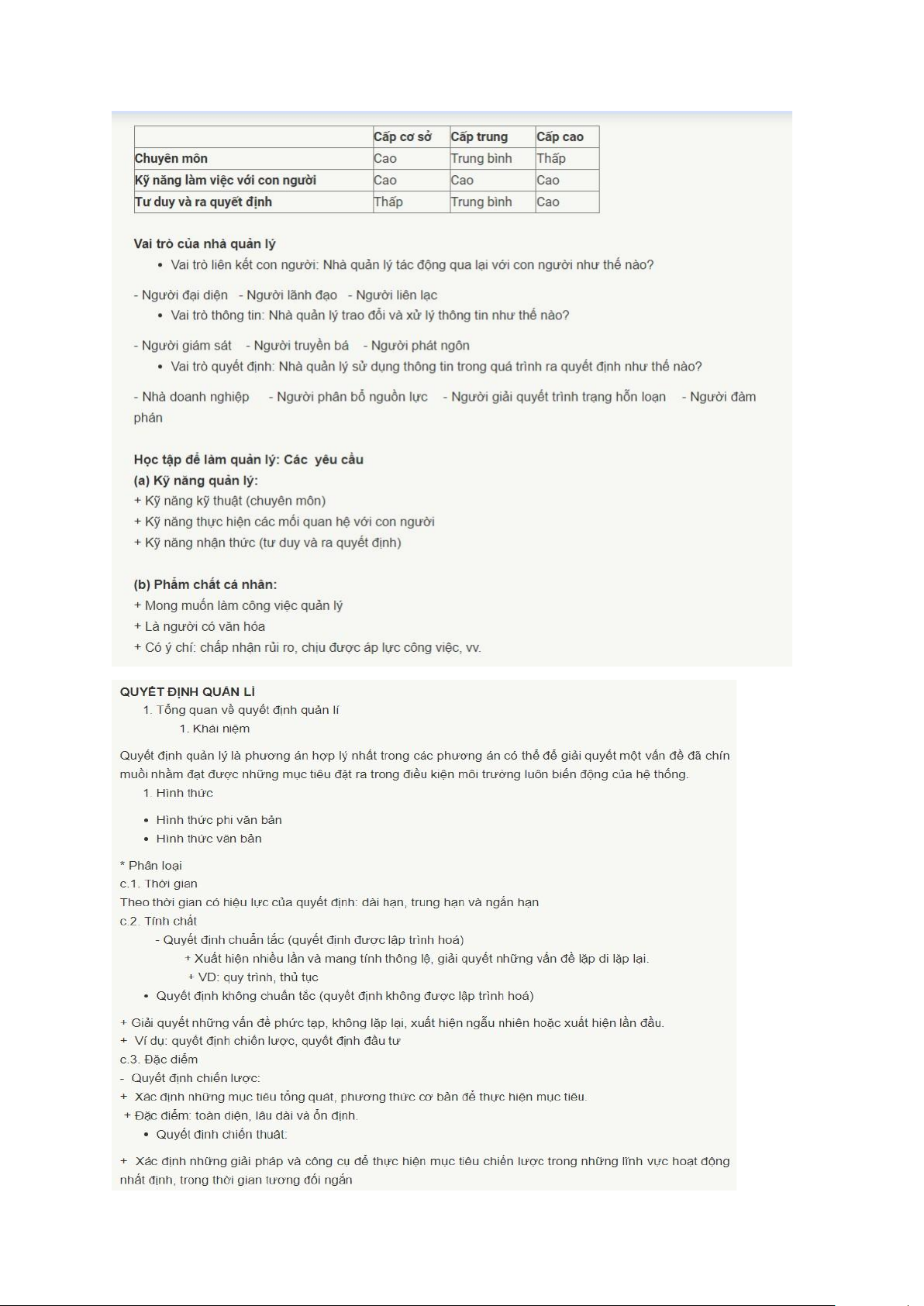 Tóm tắt nội dung Môn Quản lý học | Đại học Kinh Tế Quốc Dân