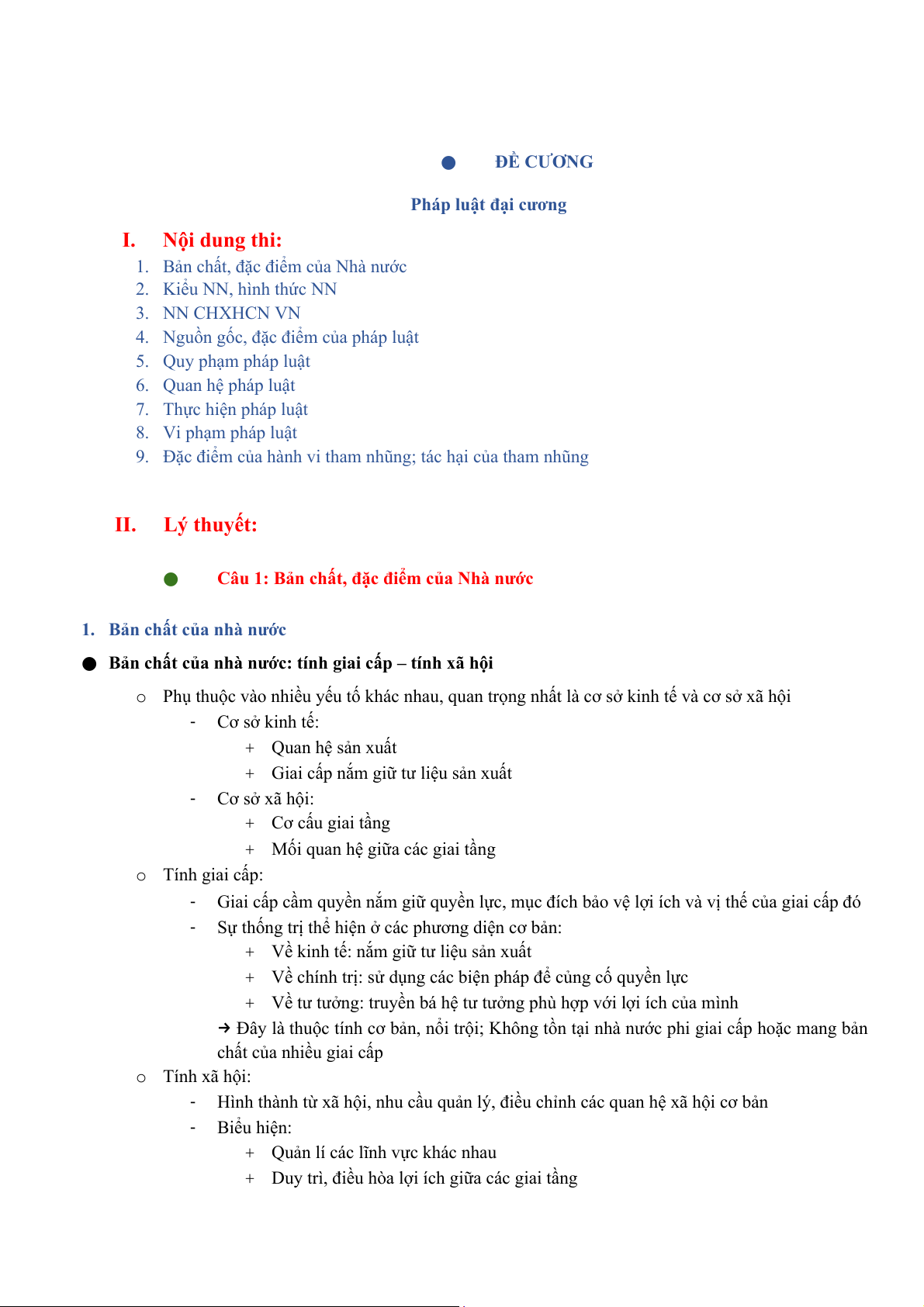 1. Bản chất, đặc điểm của Nhà nước 2. Kiểu NN, hình thức NN 3. NN CHXHCN VN