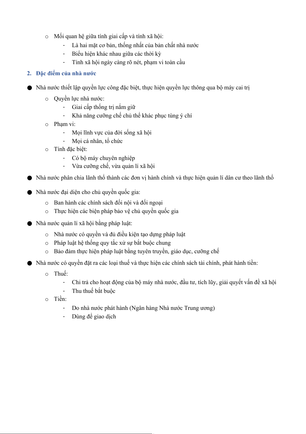 ● Nhà nước thiết lập quyền lực công đặc biệt, thực hiện quyền lực thông qua bộ máy cai trị o Quyền lực nhà nước: -