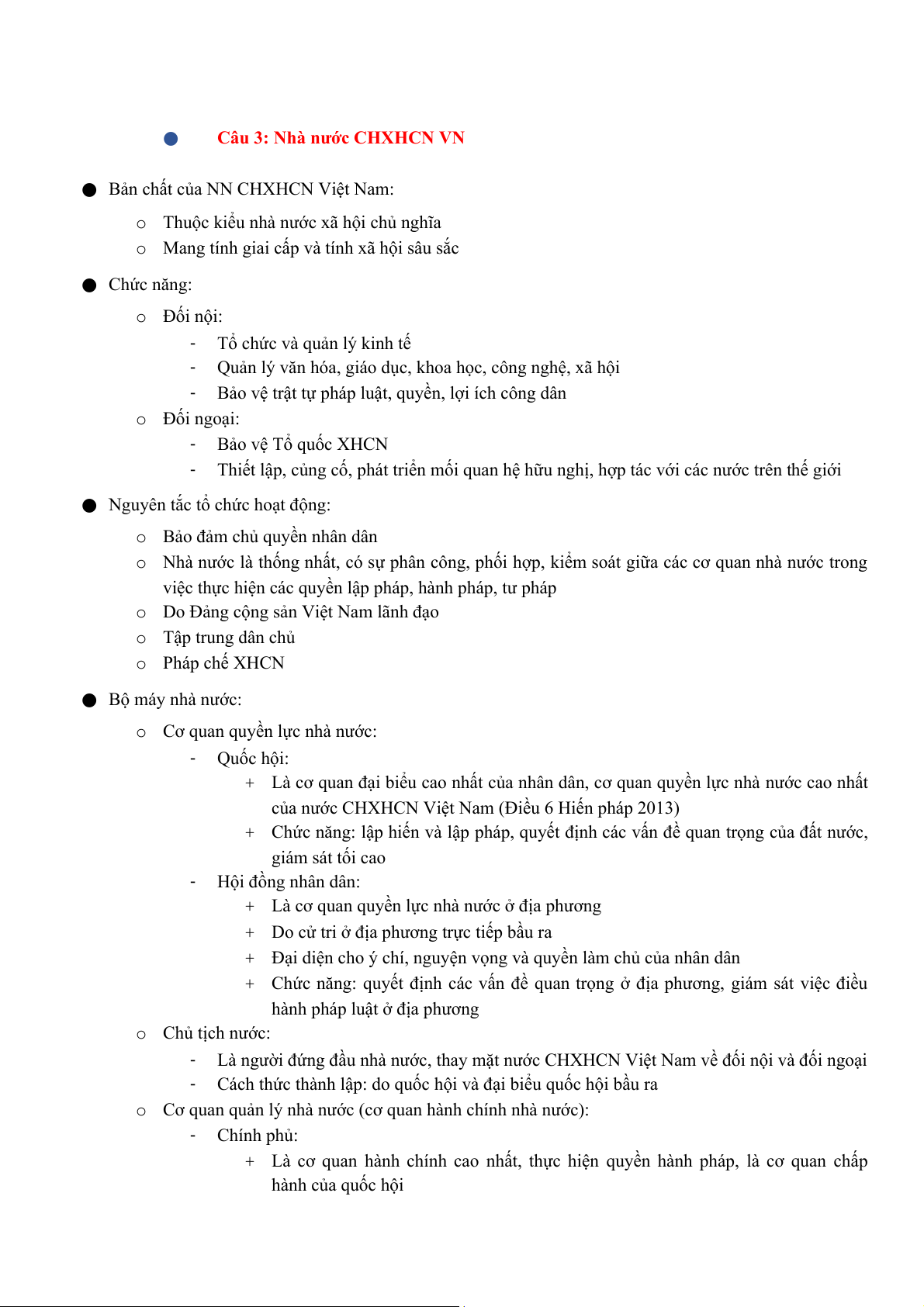 Câu 3: Nhà nước CHXHCN VN