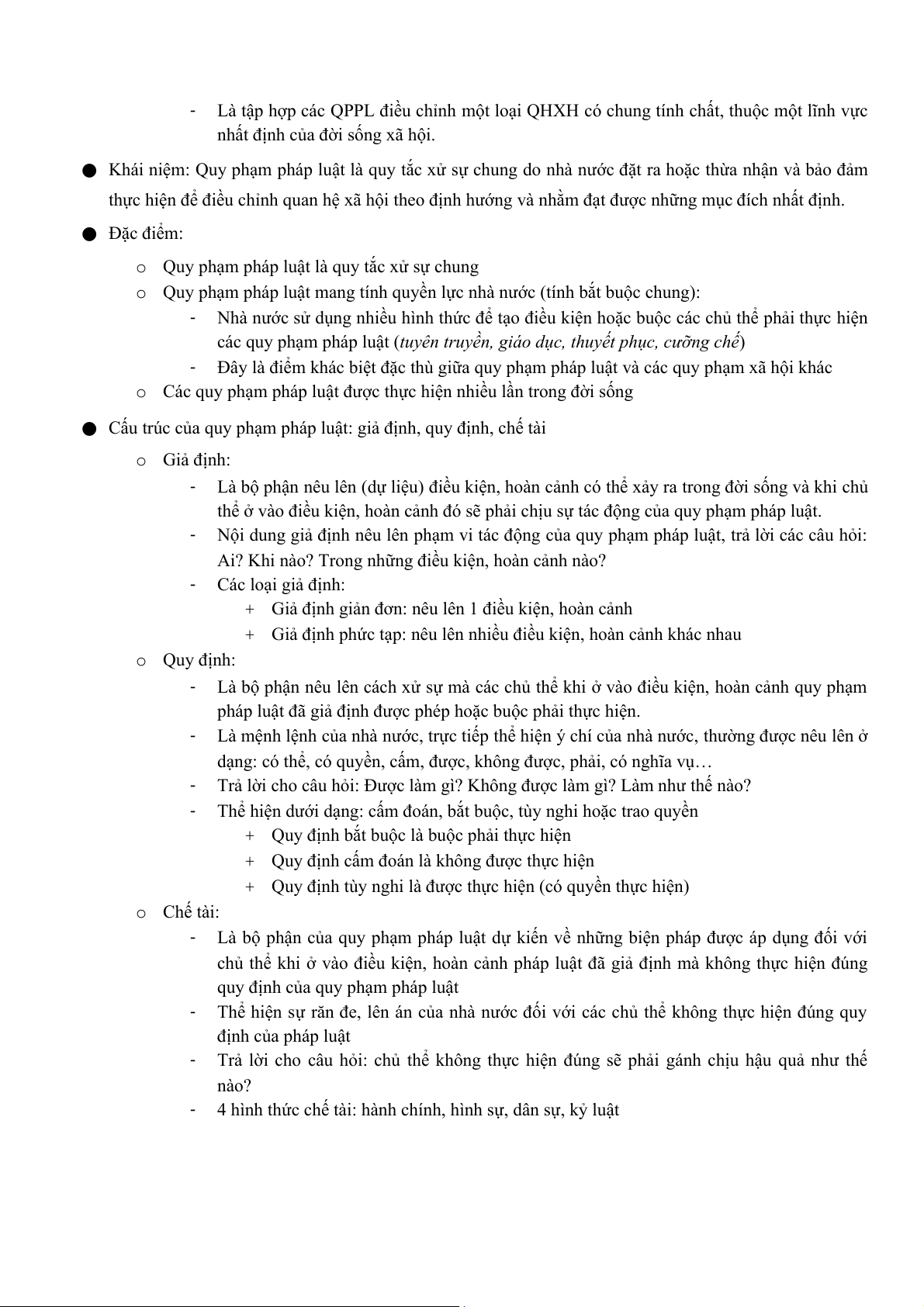 4. Nguồn gốc, đặc điểm của pháp luật 5. Quy phạm pháp luật 6. Quan hệ pháp luật 7. Thực hiện pháp luật 8. Vi phạm pháp luật