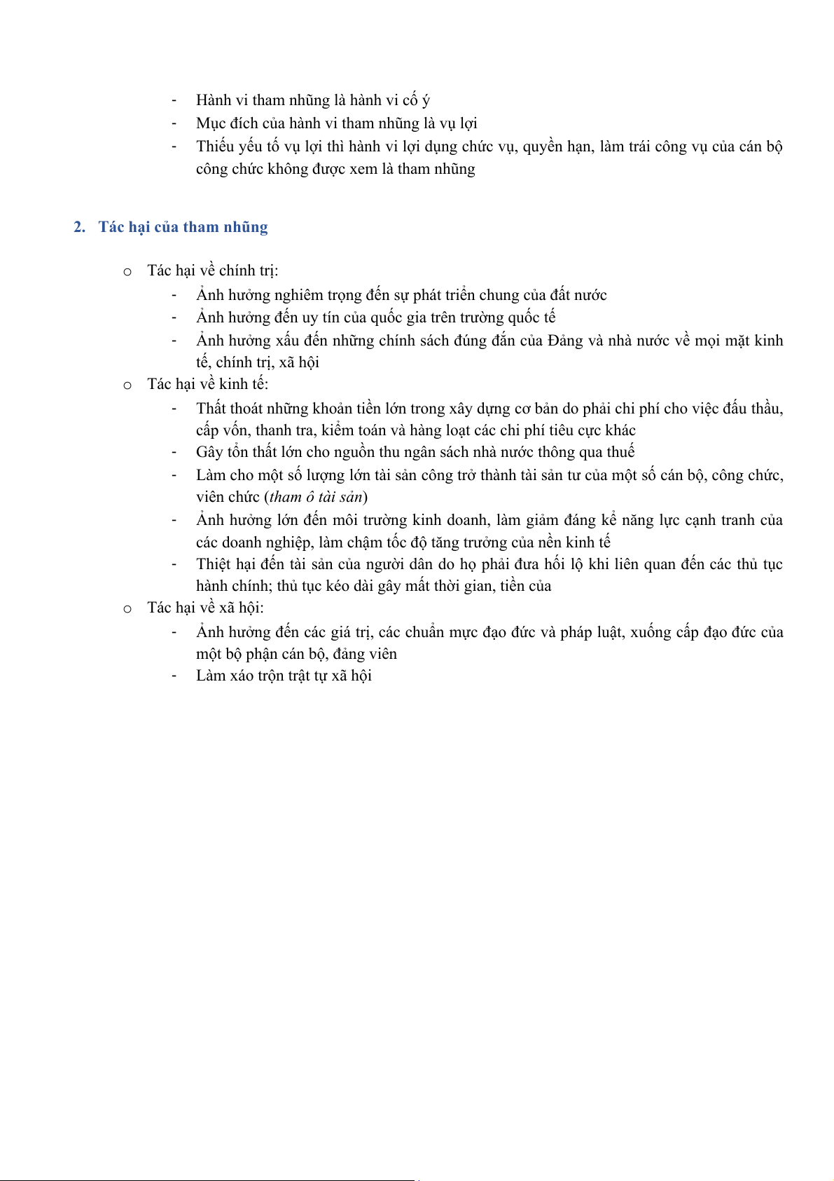 Câu 9: Đặc điểm của hành vi tham nhũng; tác hại của tham nhũng