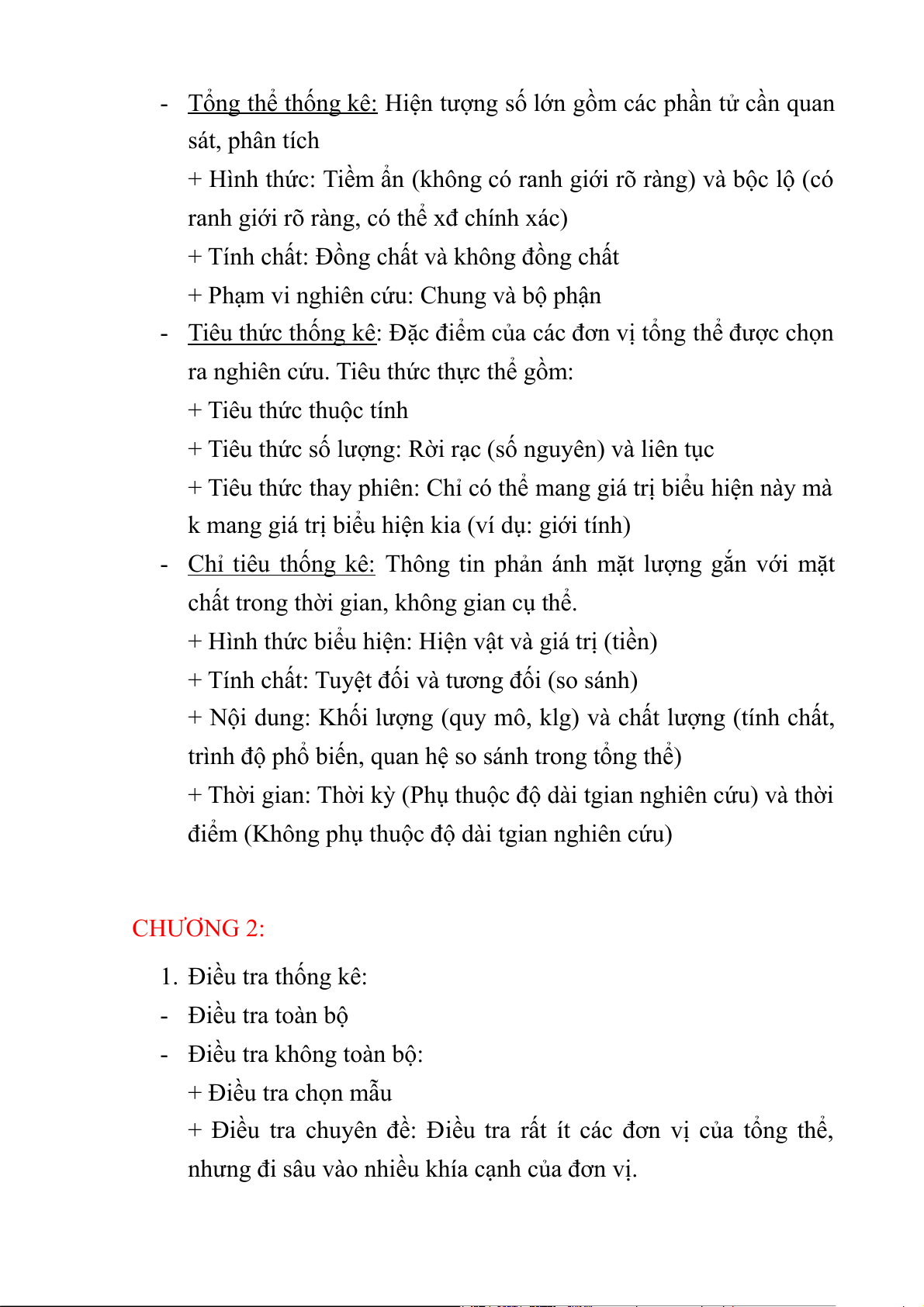 điểm (Không phụ thuộc độ dài tgian nghiên cứu) CHƯƠNG 2: 1. Điều tra thống kê: - Điều tra toàn bộ