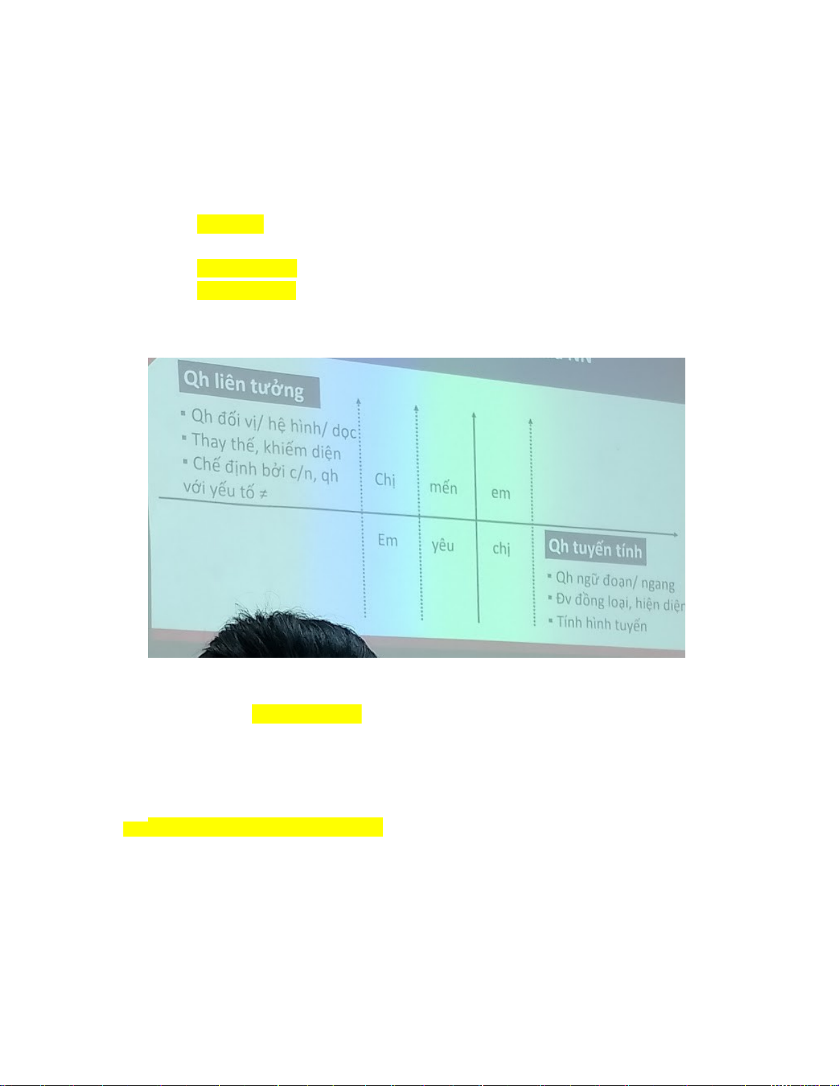 - QH liên tưởng: QH đối vị, hệ hình, hệ dọc / thay thế, khiếm diện.