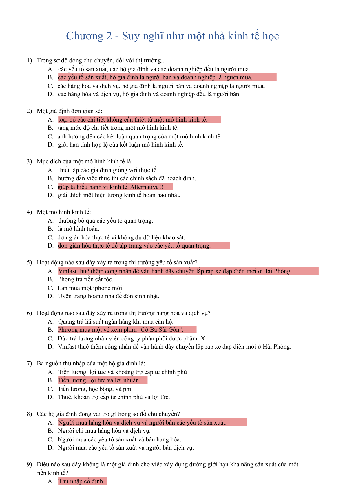 D. giải thích một hiện tượng kinh tế hoàn hảo nhất. 4) Một mô hình kinh tế: