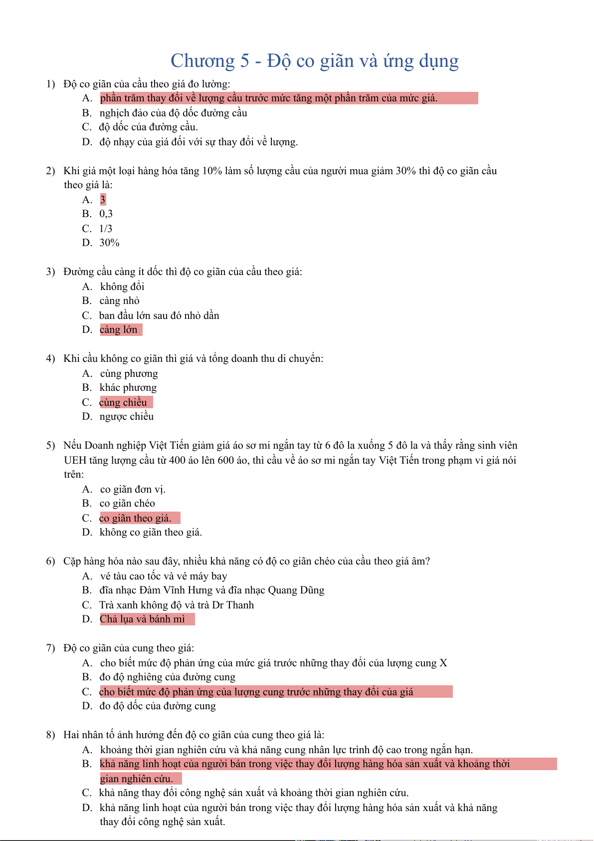 10) Cung không co giãn khi độ co giãn: A. lớn hơn 1 B. nhỏ hơn 1 C. nhỏ hơn 0 D. nhỏ hơn hoặc bằng 1
