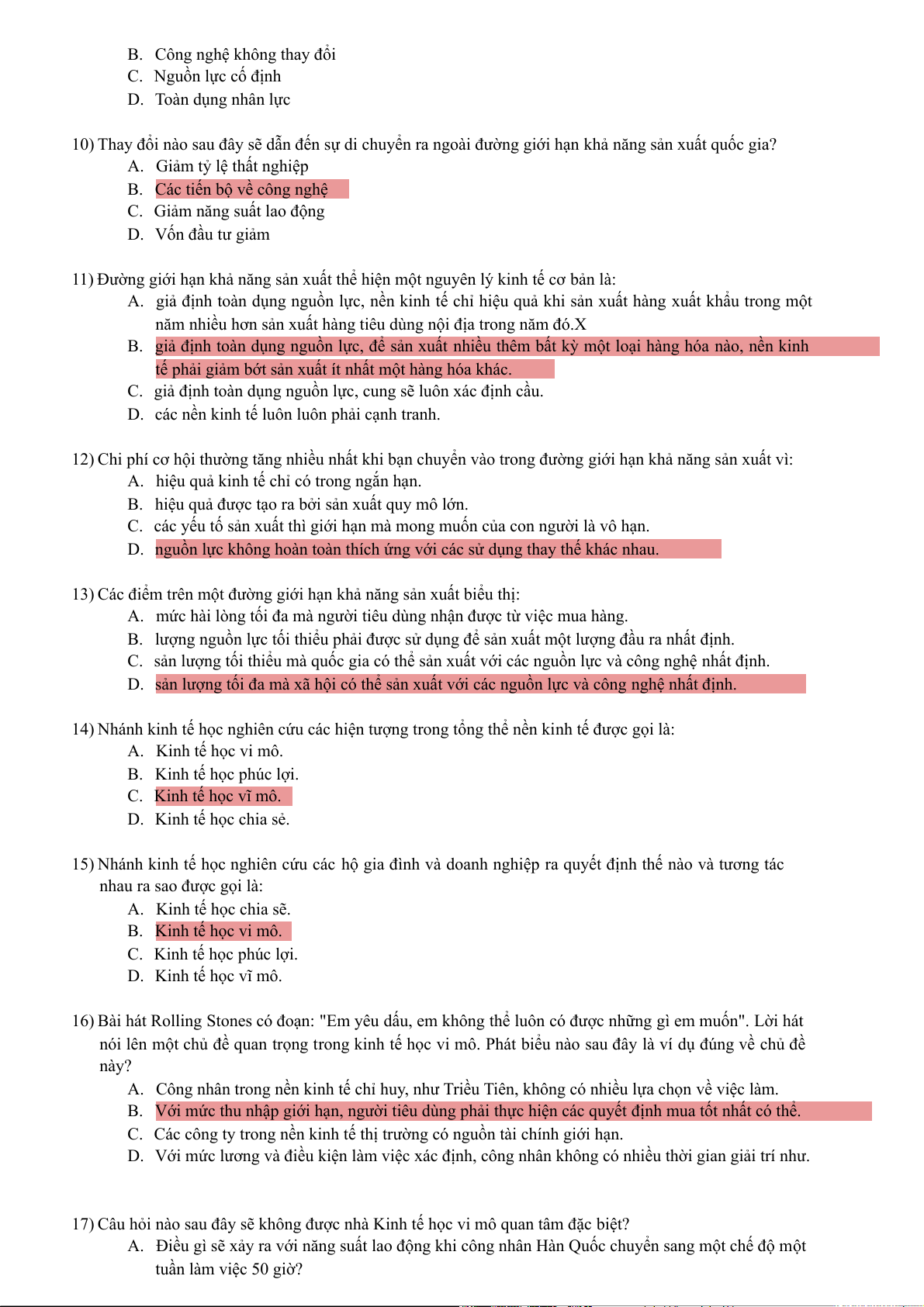 13) Các điểm trên một đường giới hạn khả năng sản xuất biểu thị: