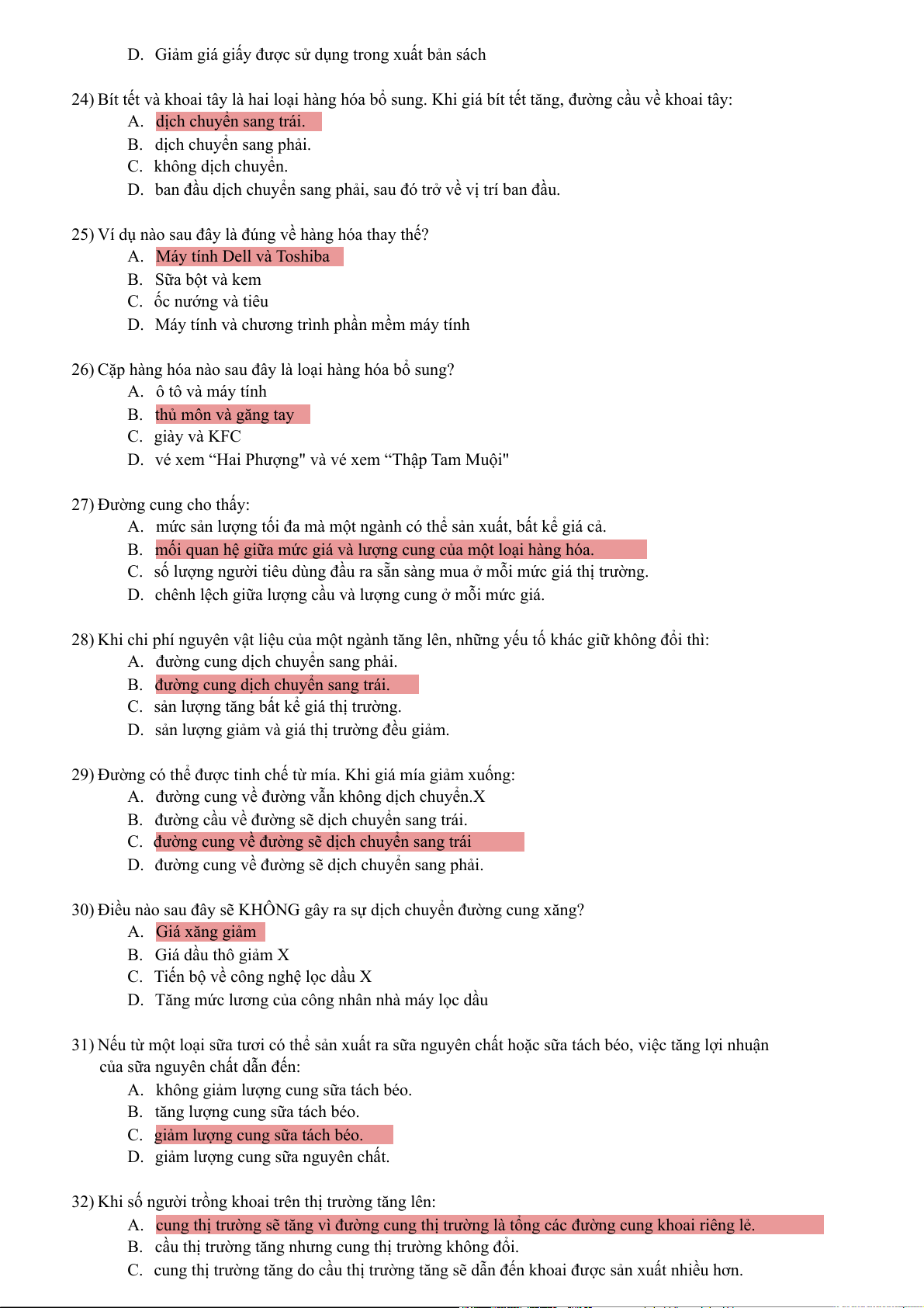 D. đường cung dịch chuyển phải còn đường cầu giữ nguyên. 14) Trong ngắn hạn: