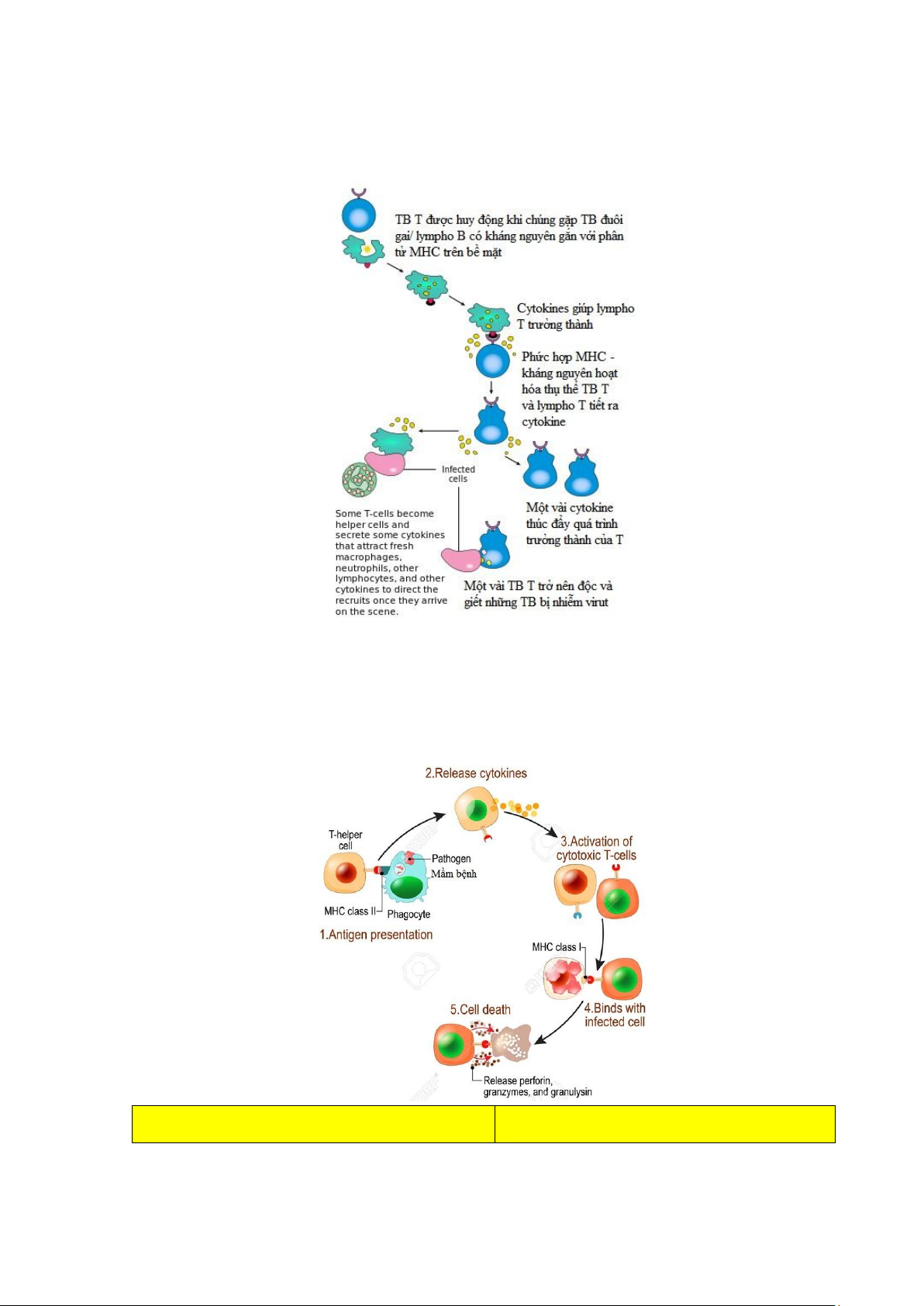 + Khi một tế bào T hỗ trợ naïve gắn khớp với một phân tử MHC lớp II. Sự kiện này