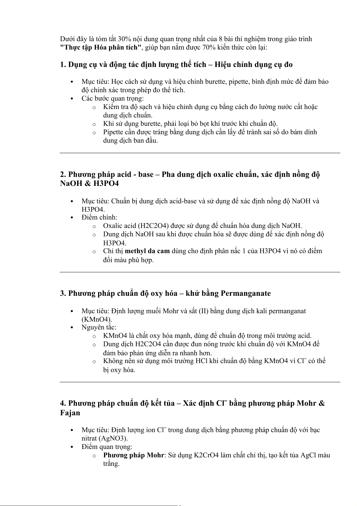 Dưới đây là tóm tắt 30% nội dung quan trọng nhất của 8 bài thí nghiệm trong giáo trình