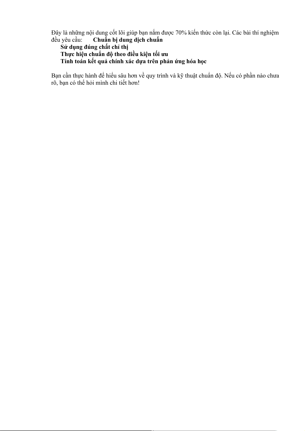 Bạn cần thực hành để hiểu sâu hơn về quy trình và kỹ thuật chuẩn độ. Nếu có phần nào chưa
