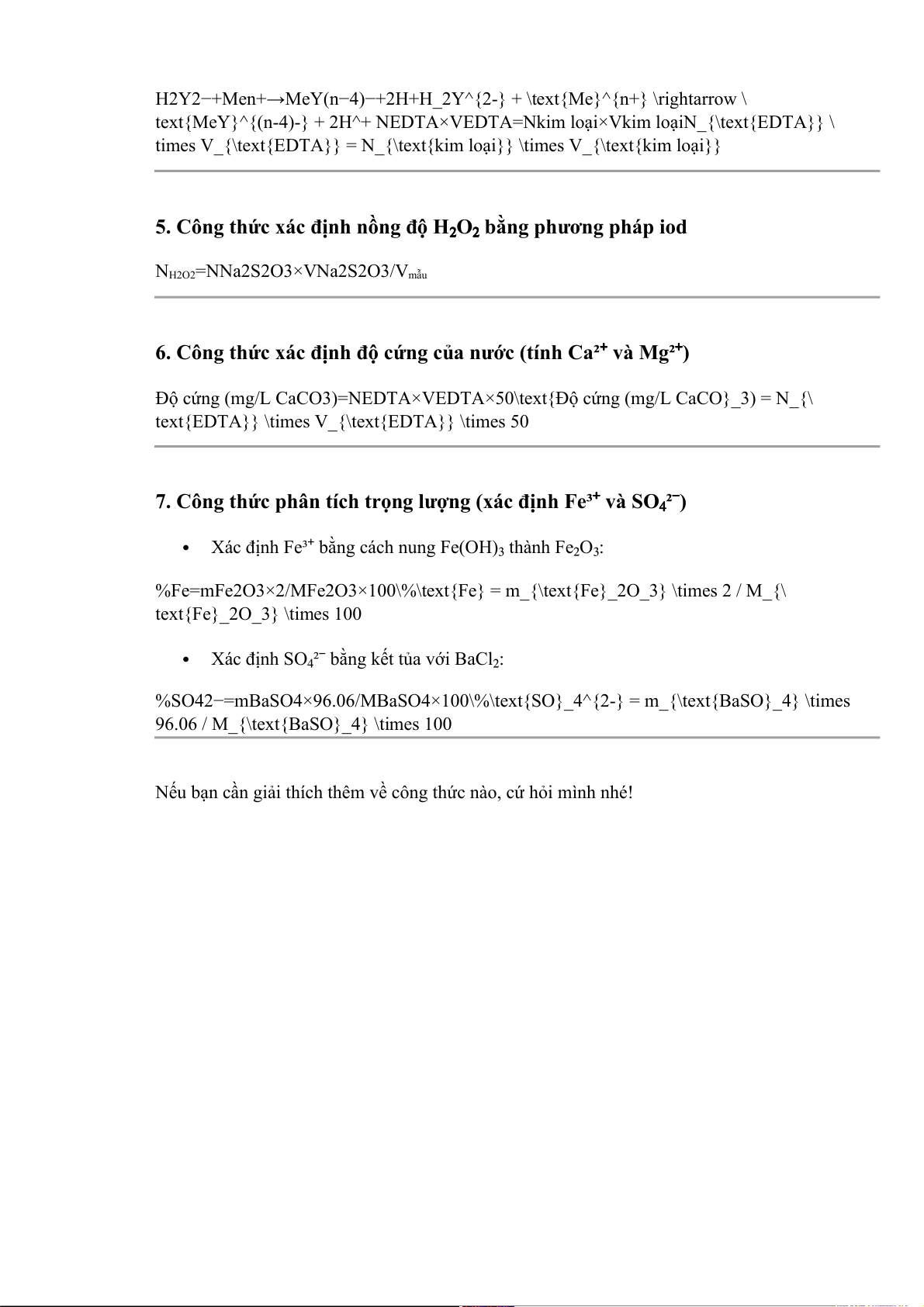 6. Công thức xác định độ cứng của nước (tính Ca²⁺ và Mg² ⁺ ⁺) ⁺
