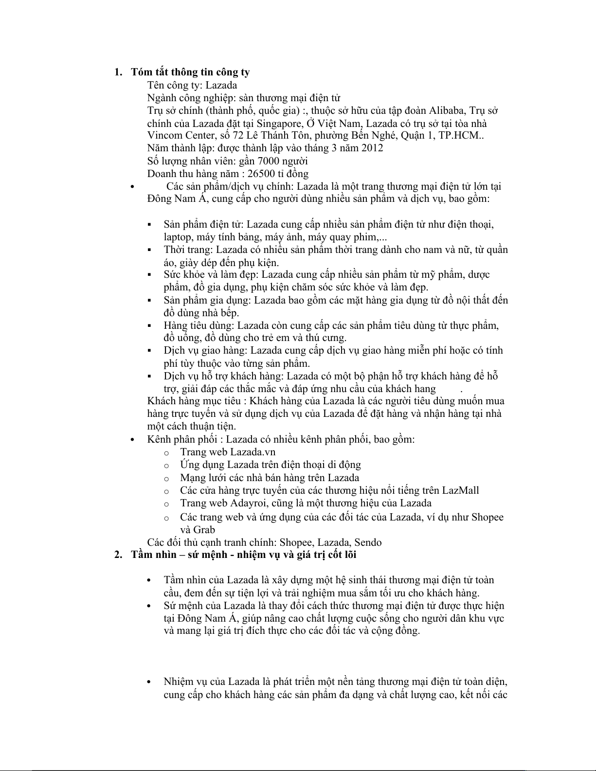 1. Tóm tắt thông tin công ty Tên công ty: Lazada